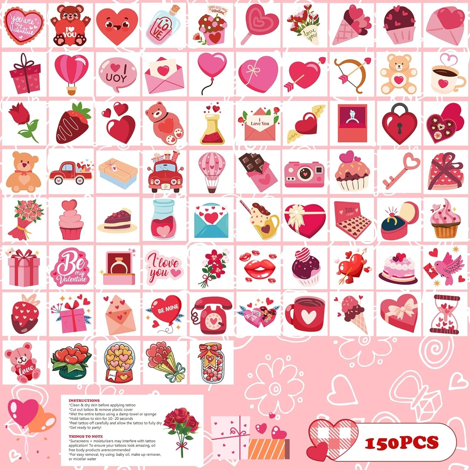 150 PCS Waterproof Valentine's Day Temporary Tattoos - Fun Gifts for Everyone