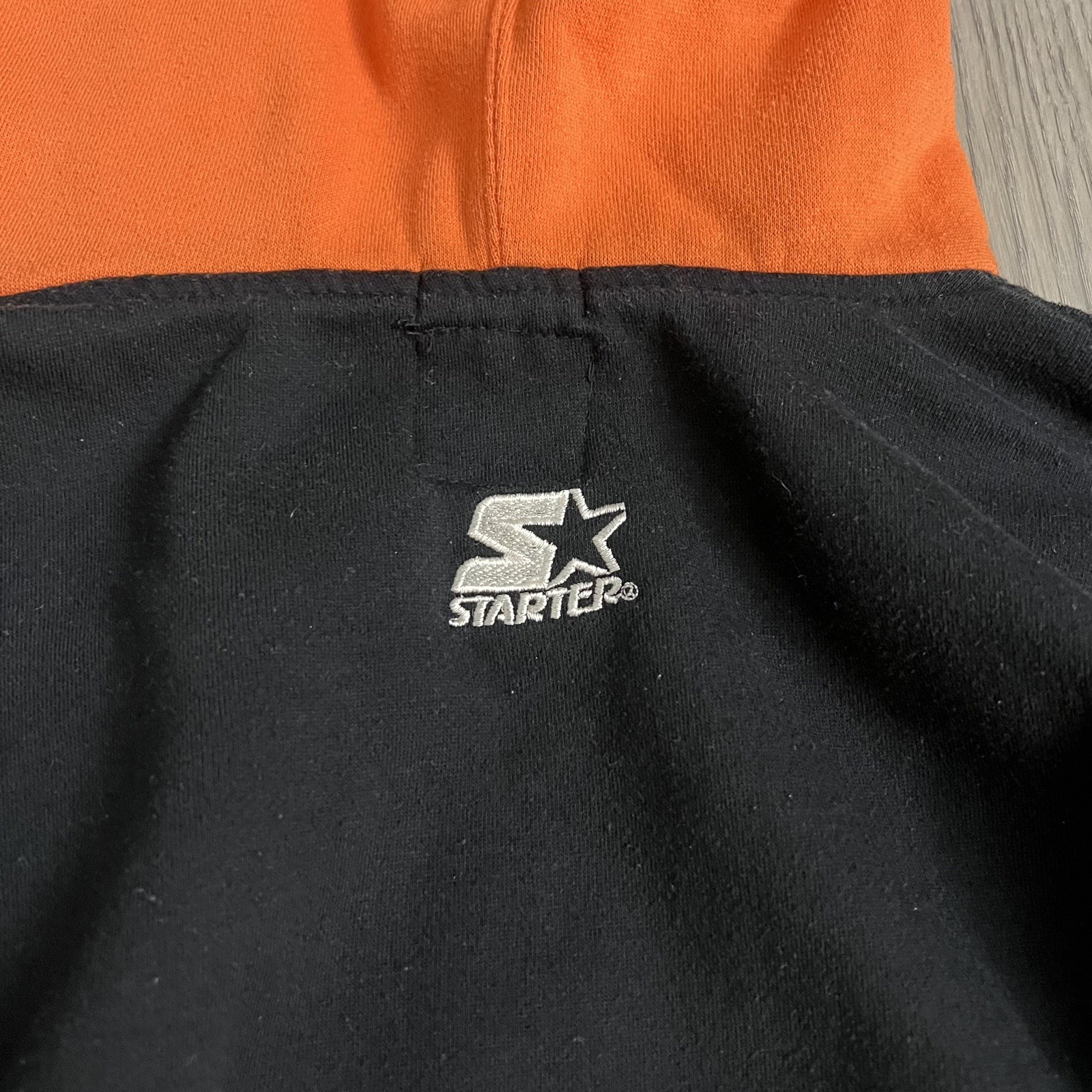 как выглядит Vintage 90s Starter Miami Hurricanes Double Hood ColorBlock Hoodie Size Medium фото