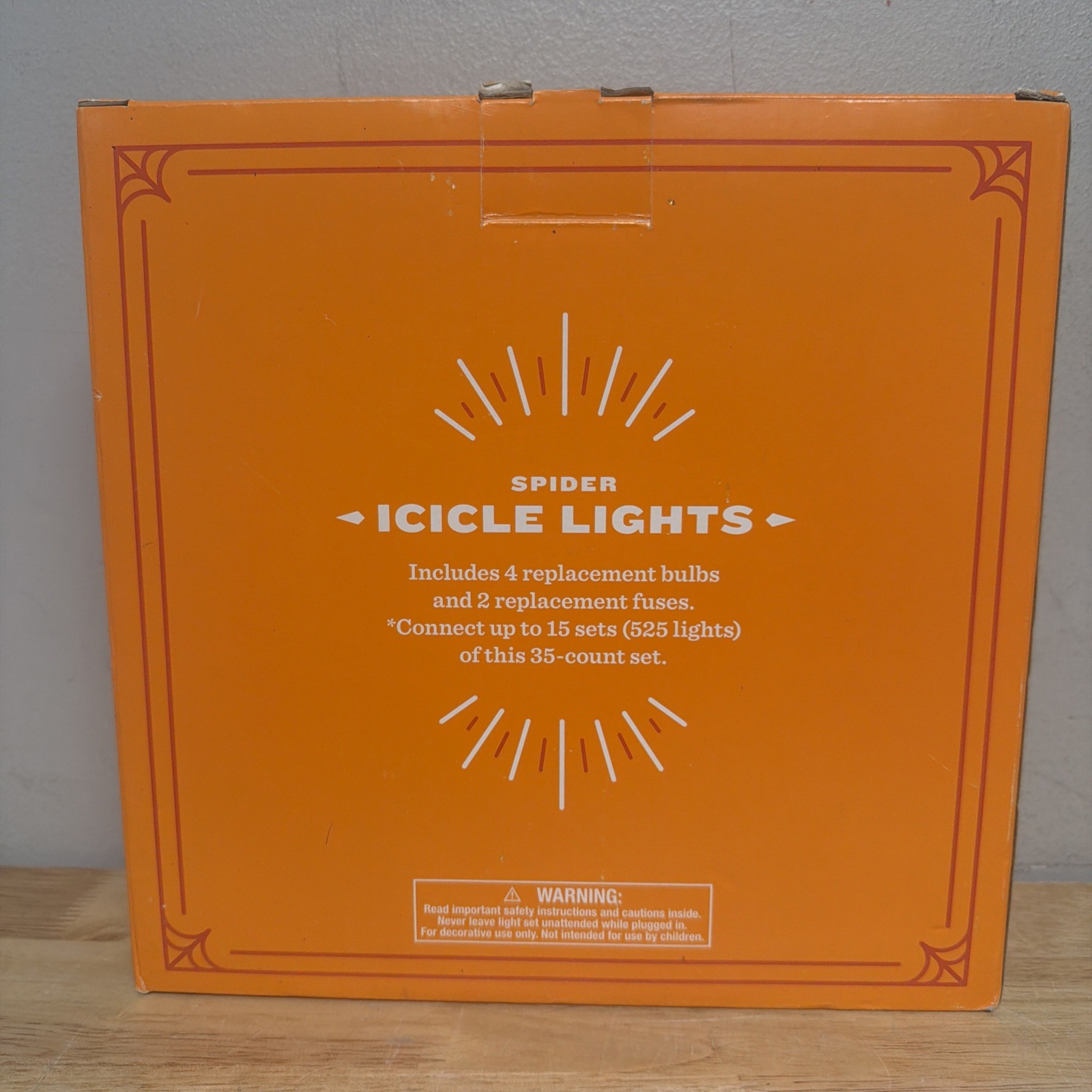 Hyde And Eek Halloween Spider Icicle Lights Purple Clear Blubs 12 Spiders