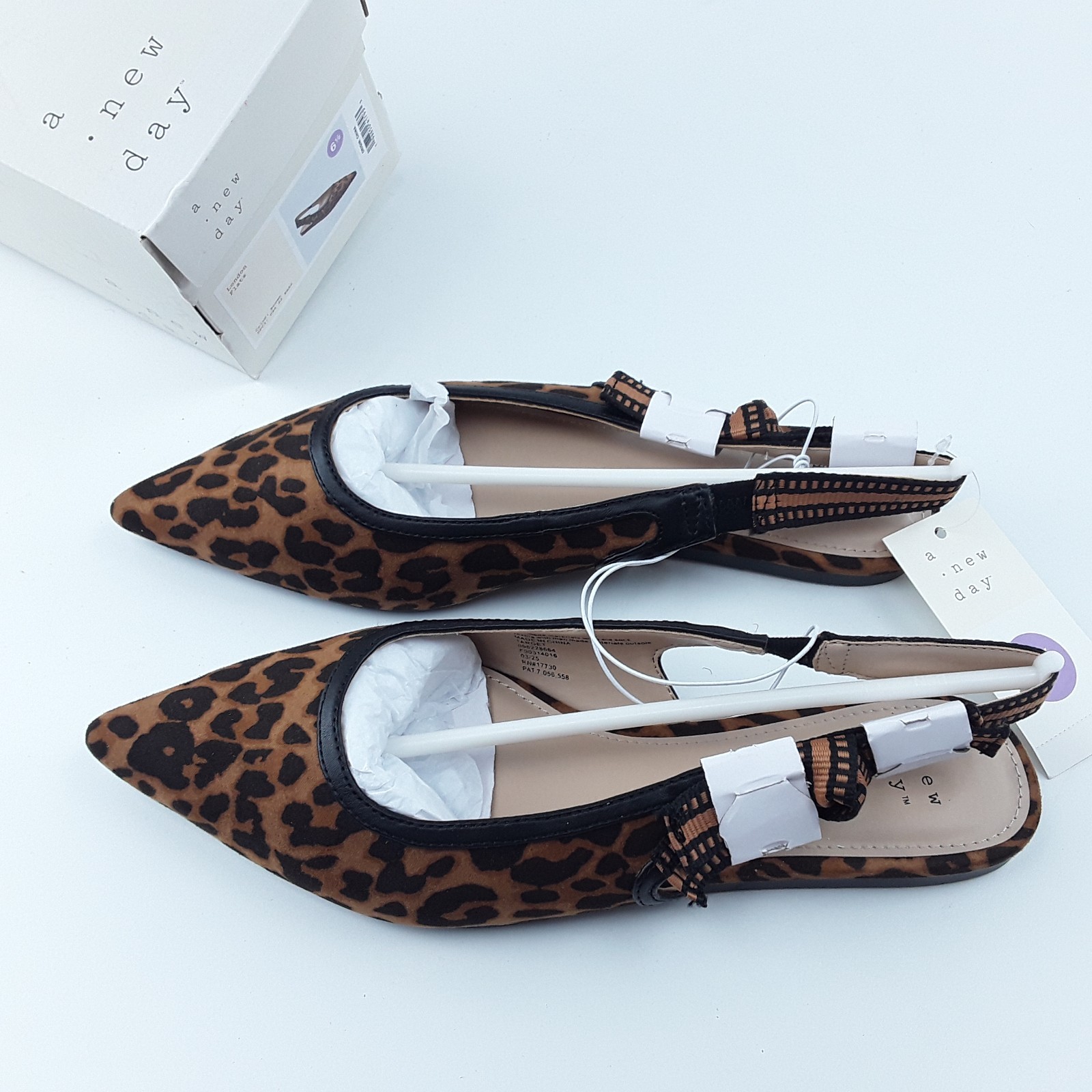 как выглядит A New Day London Pump Womens Brown Leopard Print Pointed Toe Flat Shoes фото