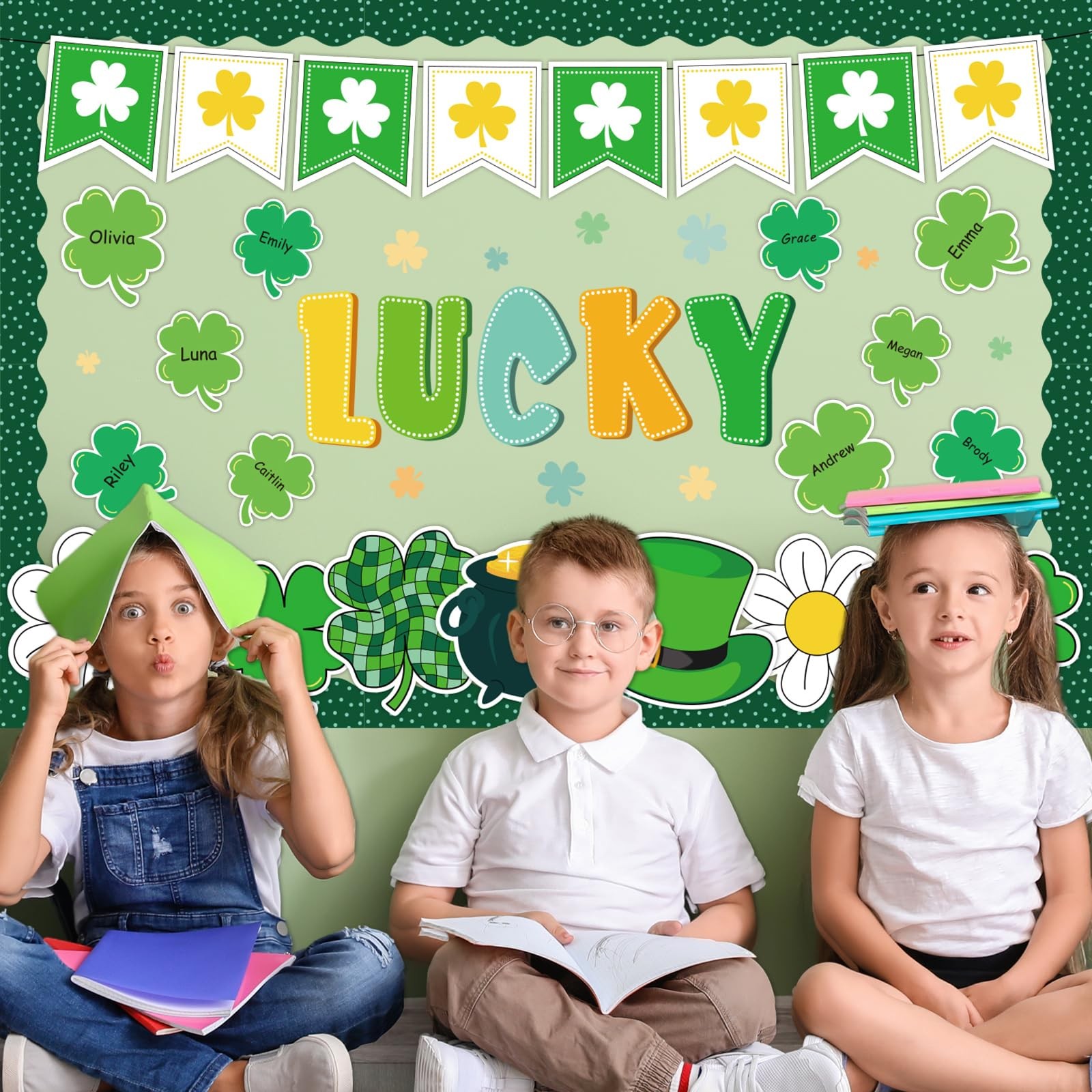 St. Patrick's Day Classroom Bulletin Board Decoration Gold Green Shamrock Paper