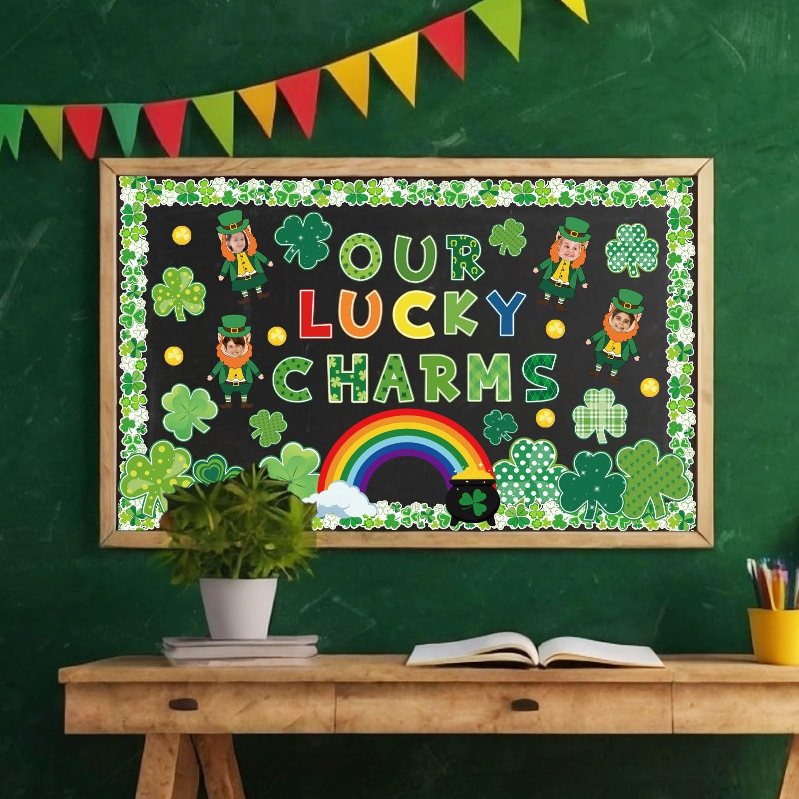 как выглядит 95Pcs St. Patricks Day Bulletin Board Decor Green Lucky Shamrock Rainbow Paper фото