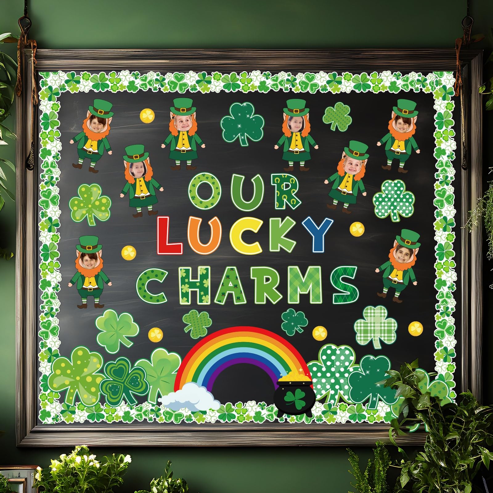 95Pcs St. Patrick's Day Bulletin Board Decor Green Lucky Shamrock Rainbow Paper