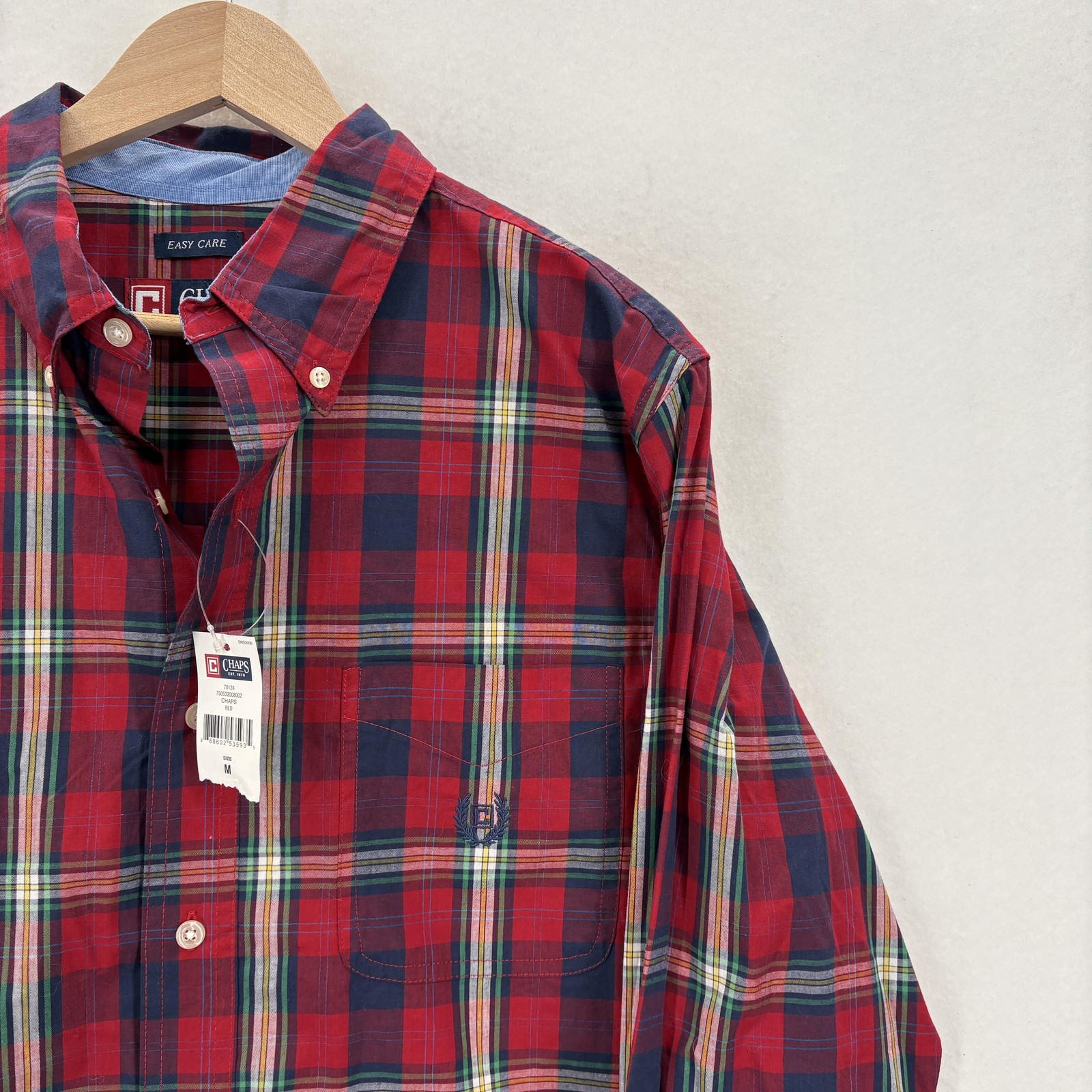 Chaps Shirt Mens Medium Red Plaid Long Sleeve Button Down Easy Care Casual NWT