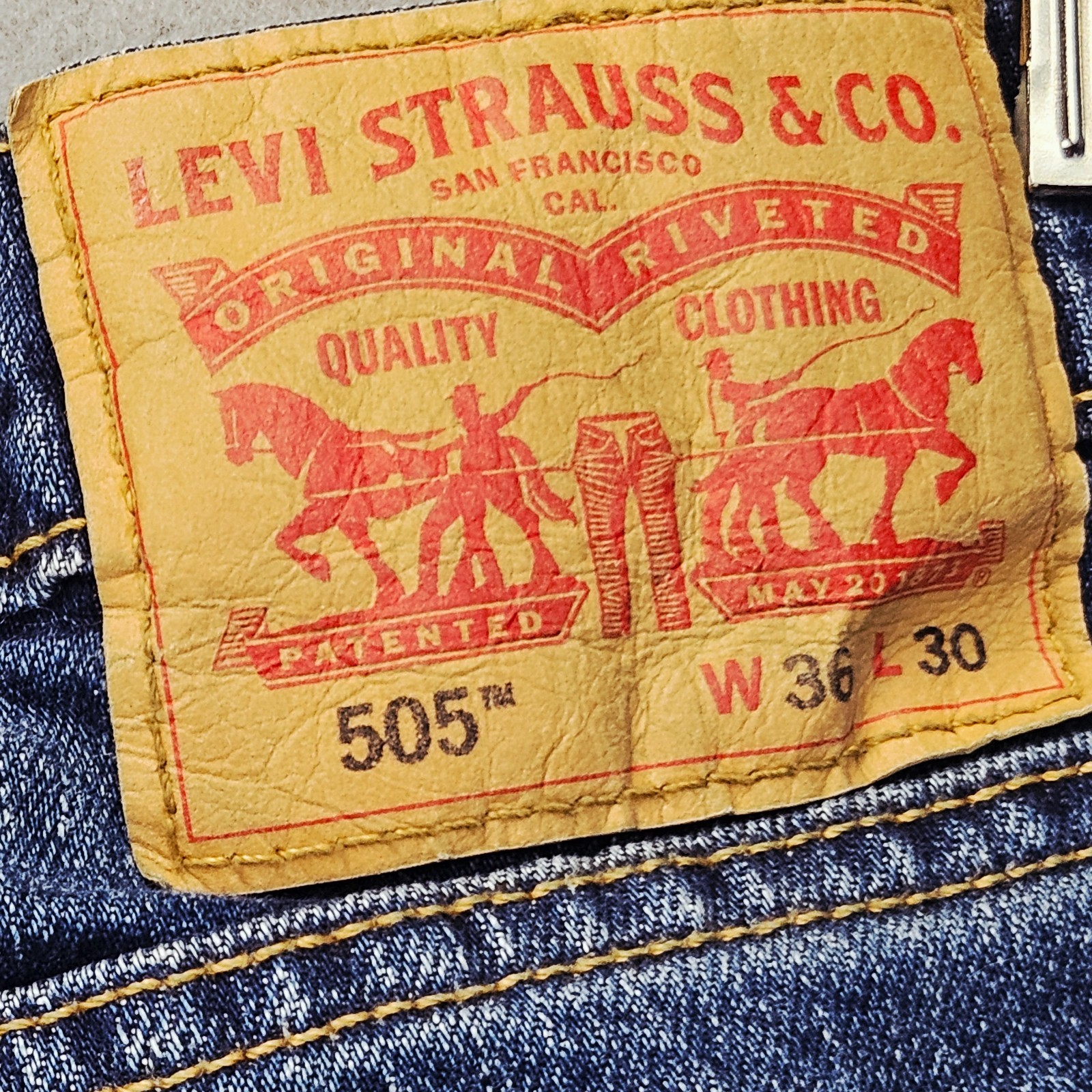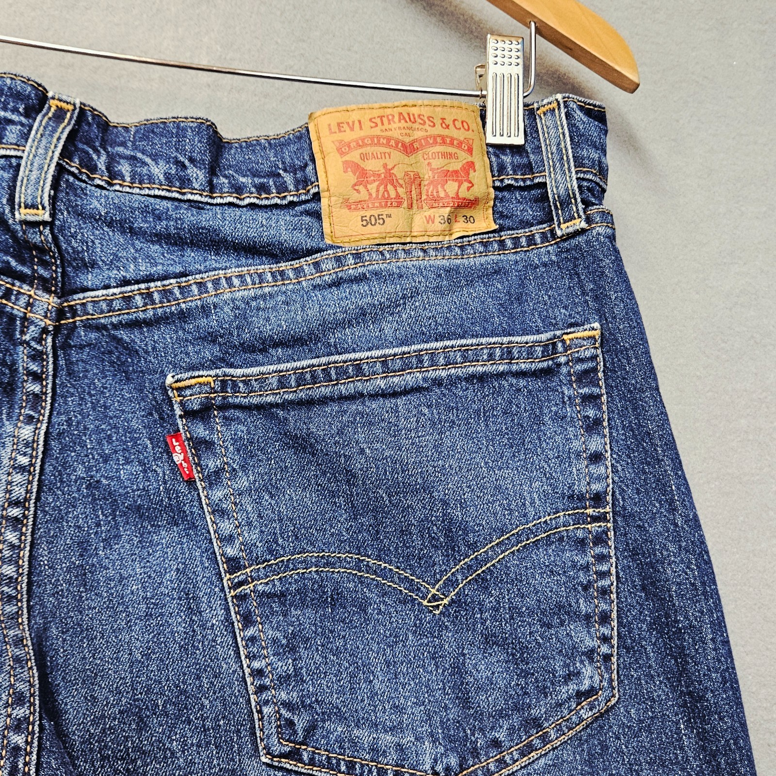 Levis 505 Jeans Mens 36x30 Blue Denim Regular Fit Straight Leg Cotton Zip Fly