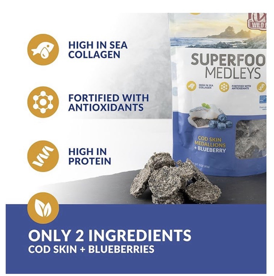 3 Wild Eats Cod Fish Skin Dog Treats Blueberries Collagen 3oz 30 Value