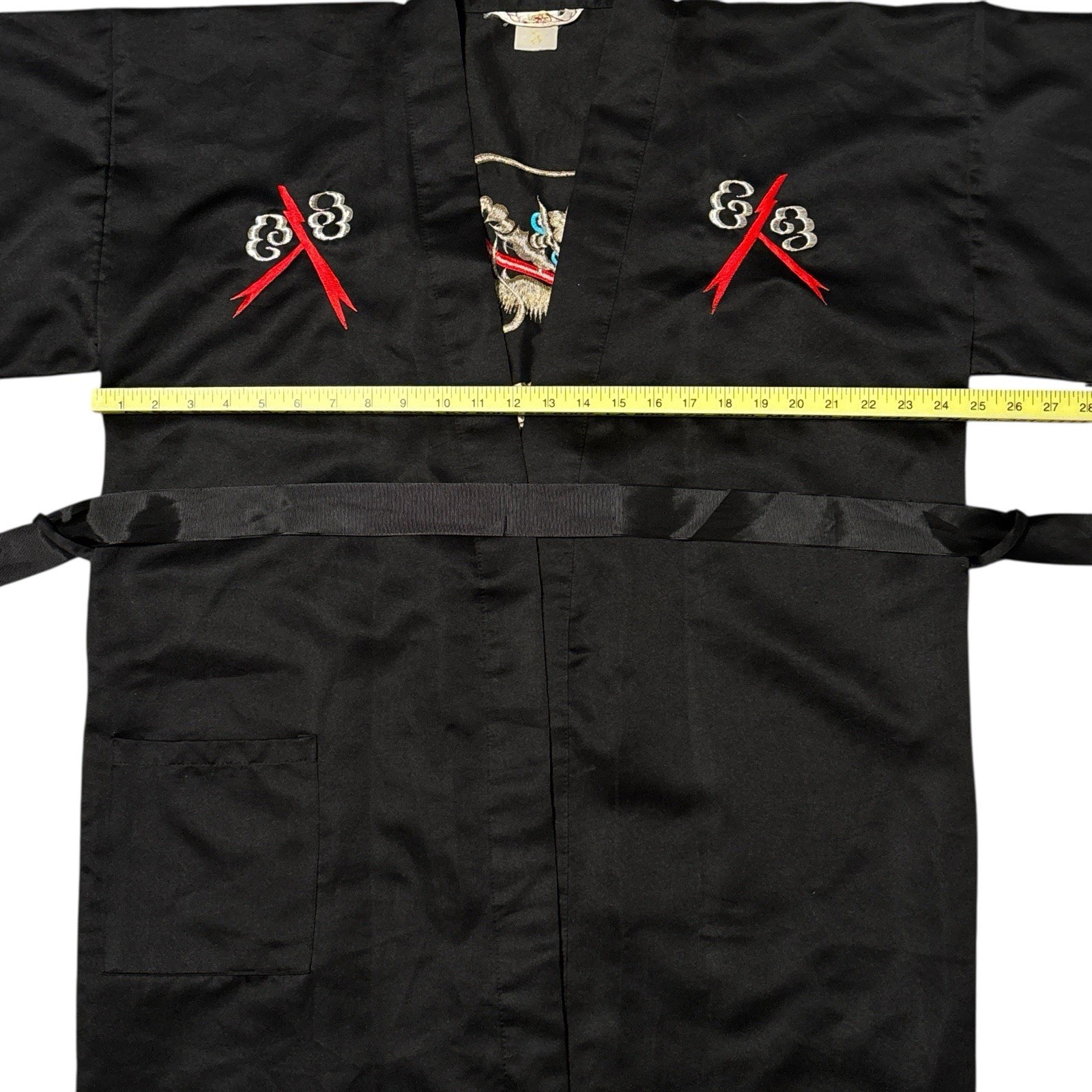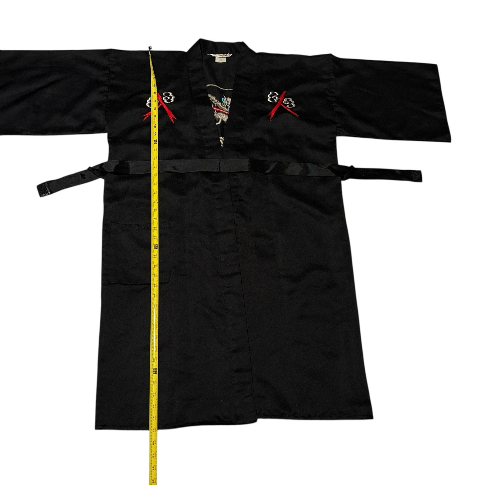 как выглядит Vtg Unisex ICHI BAN Japanese Kimono Dragon Robe Black Satin Embroidered 48" x41" фото