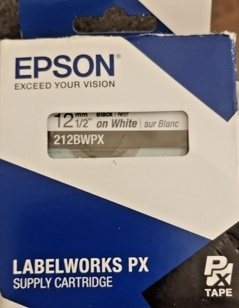Genuine Epson 212BWPX Black on White PX Label Tape 1/2 LABELWORKS PX