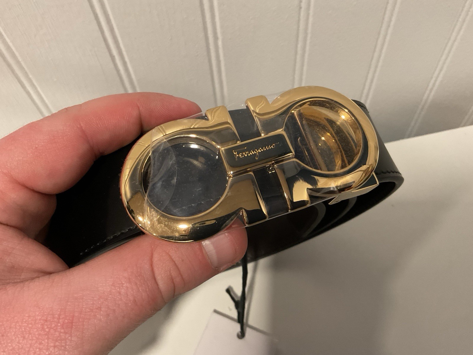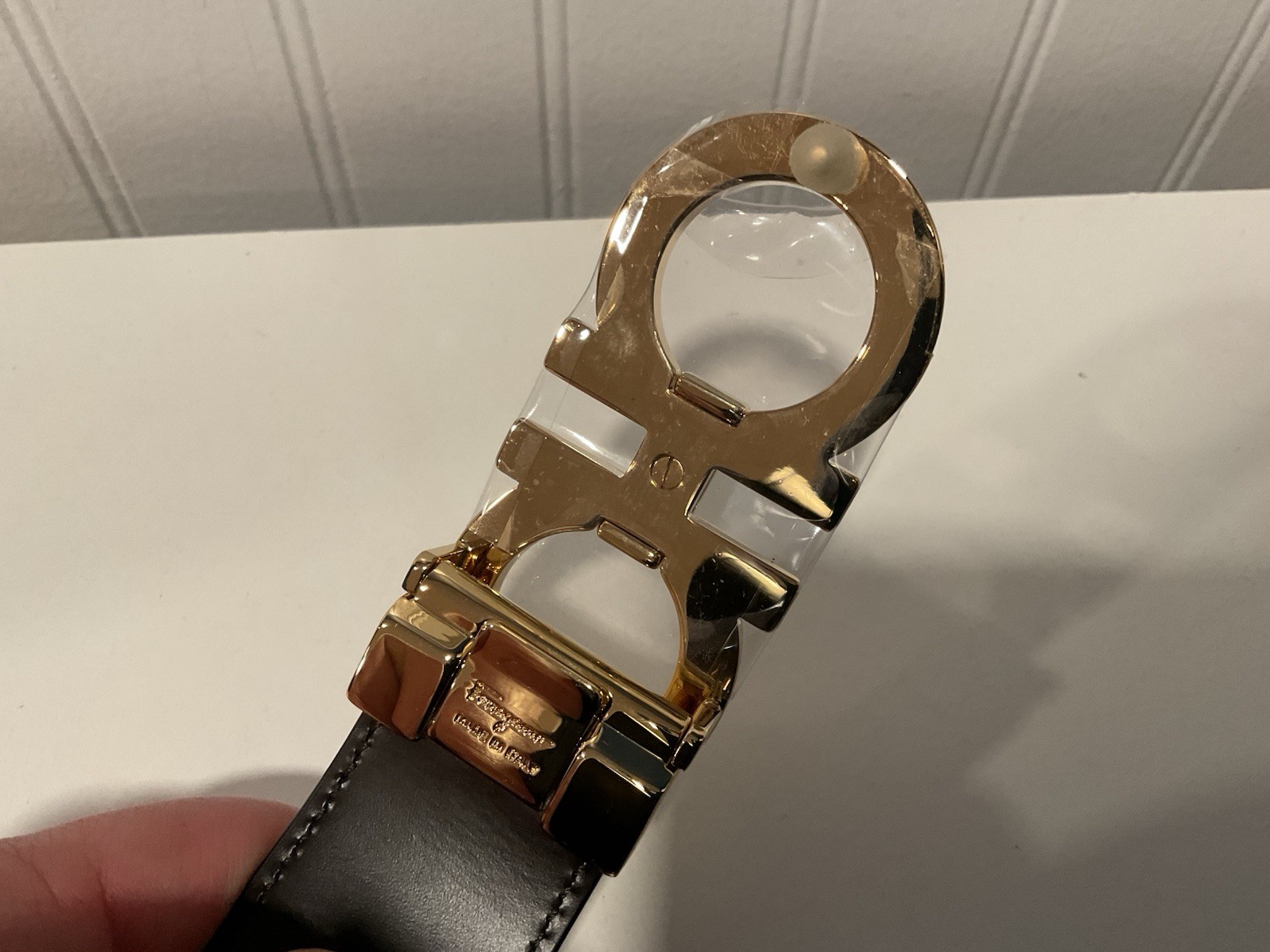 как выглядит NEW Salvatore Ferragamo Men s Reversible Gancini Belt Sz 32 Nero/Hickory 67 5542 фото