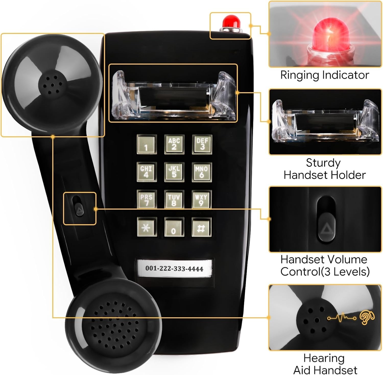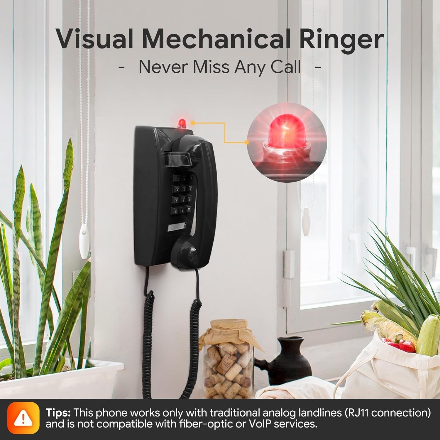 Retro Wall Phones for Landline with Mechanical Ringer Corded Telephone Wall M...