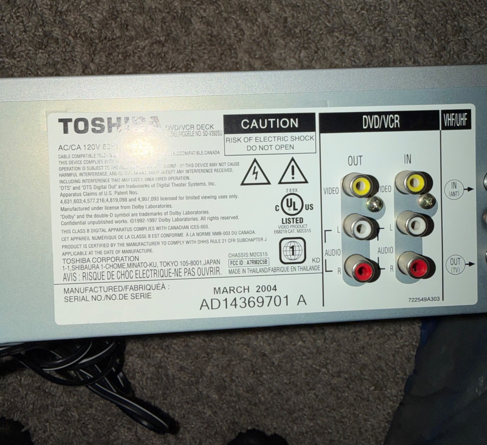 Модель: Toshiba SD-V392SU