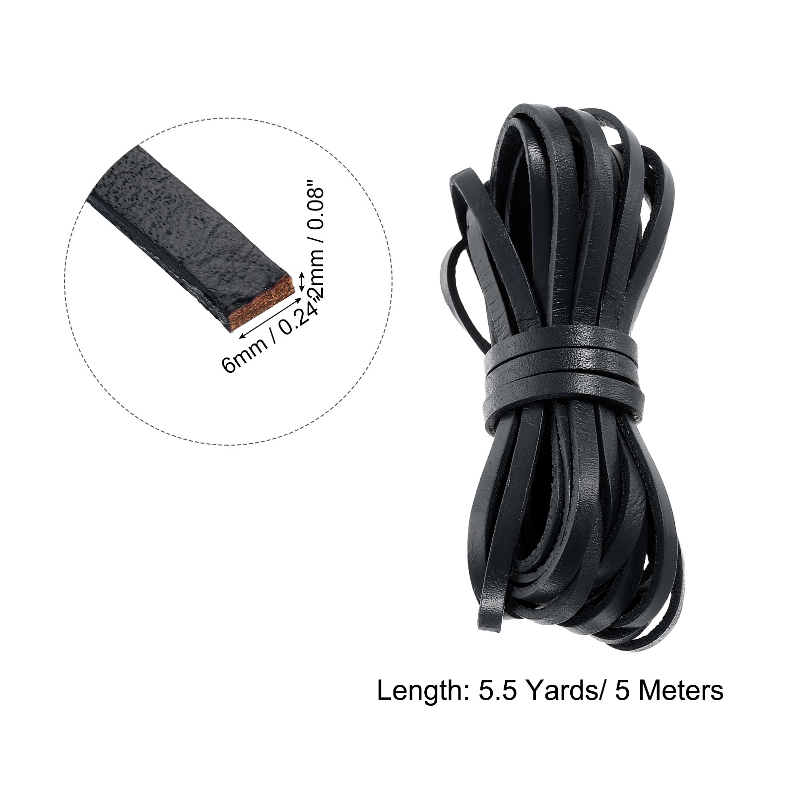 Flat Leather Cord 5.5 Yard 6mm Leather String Strips for DIY Crafts Black