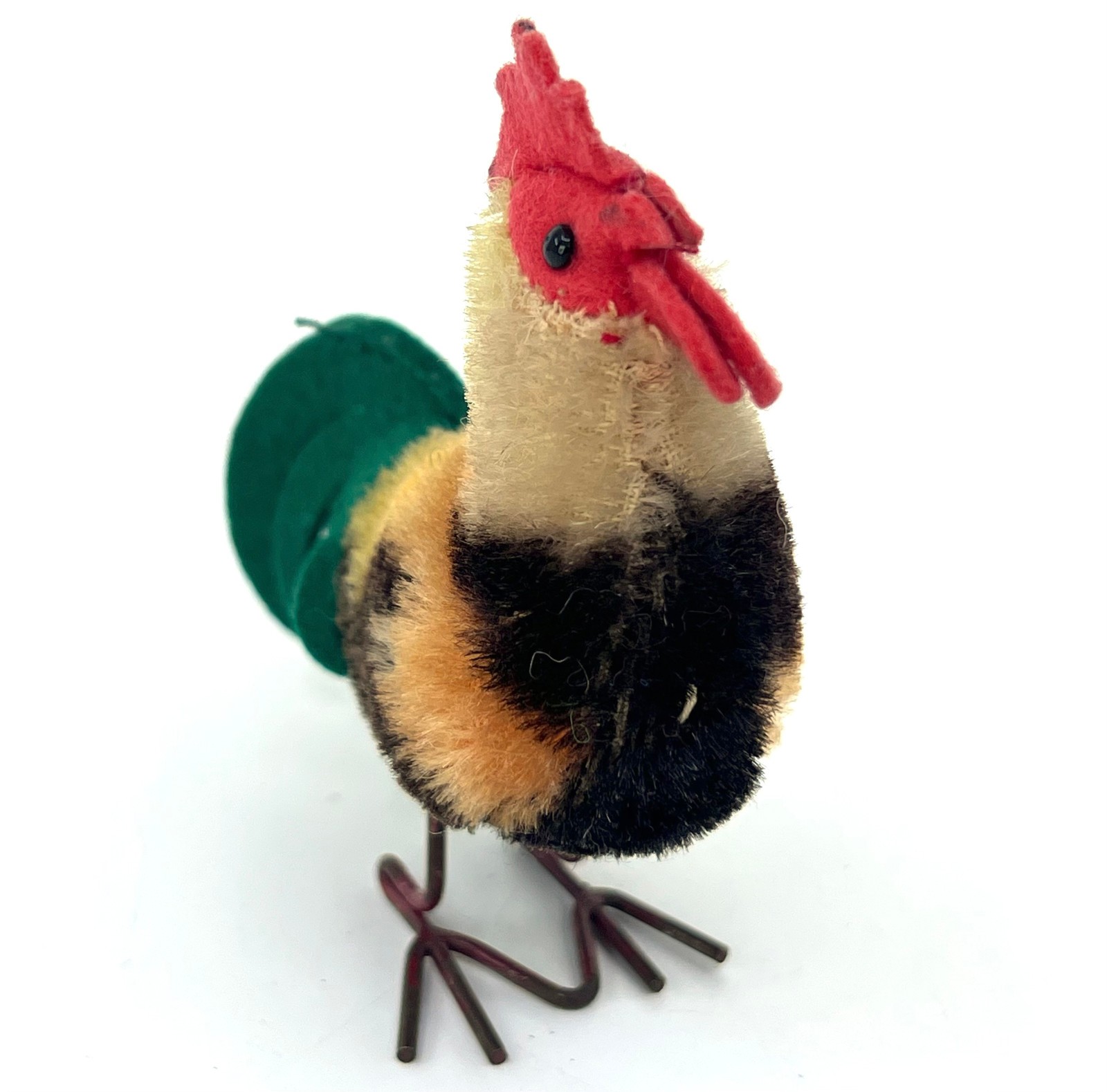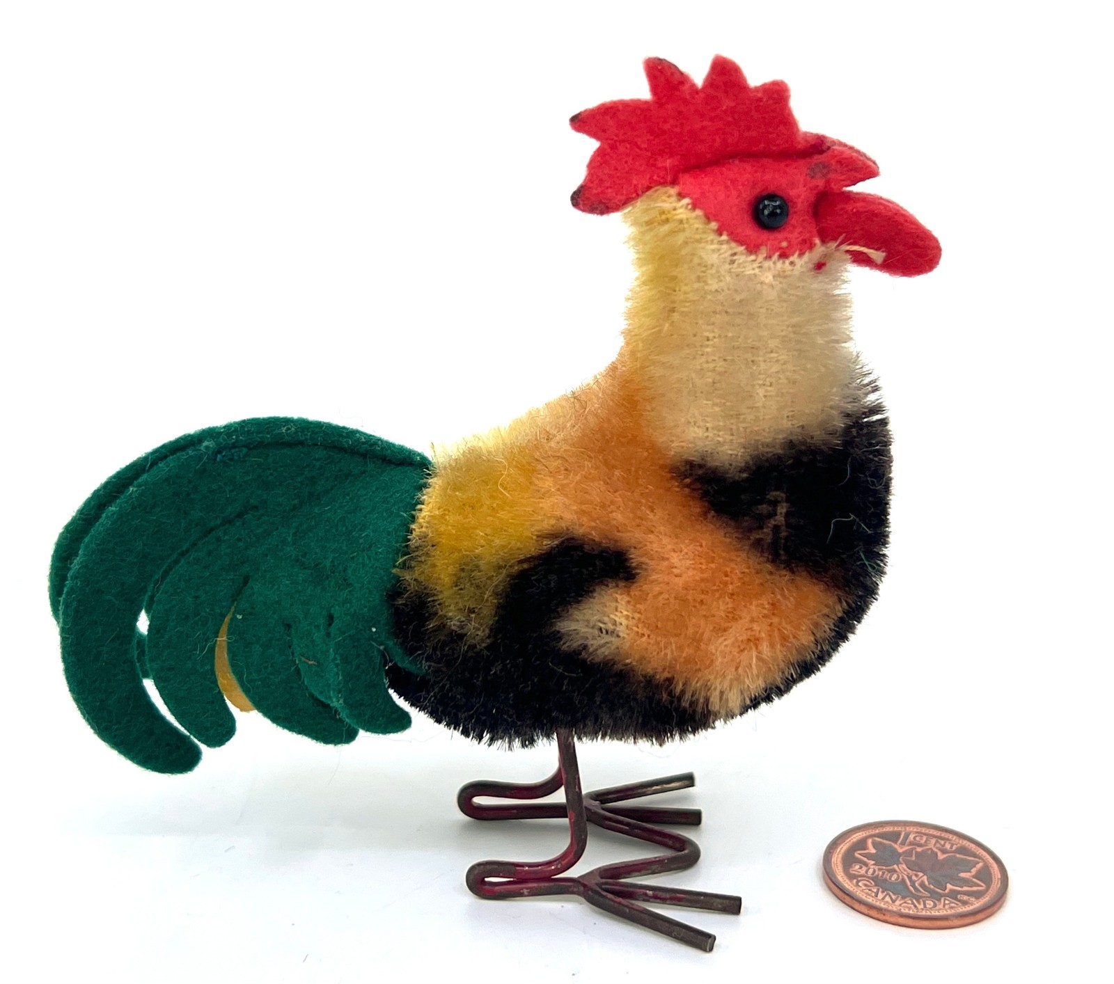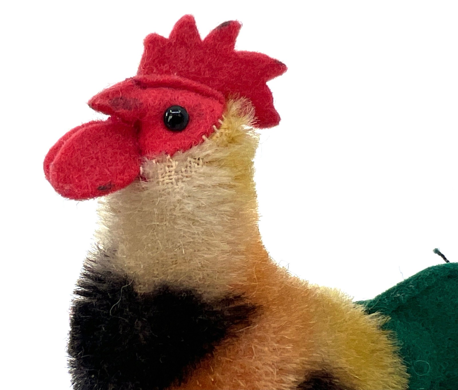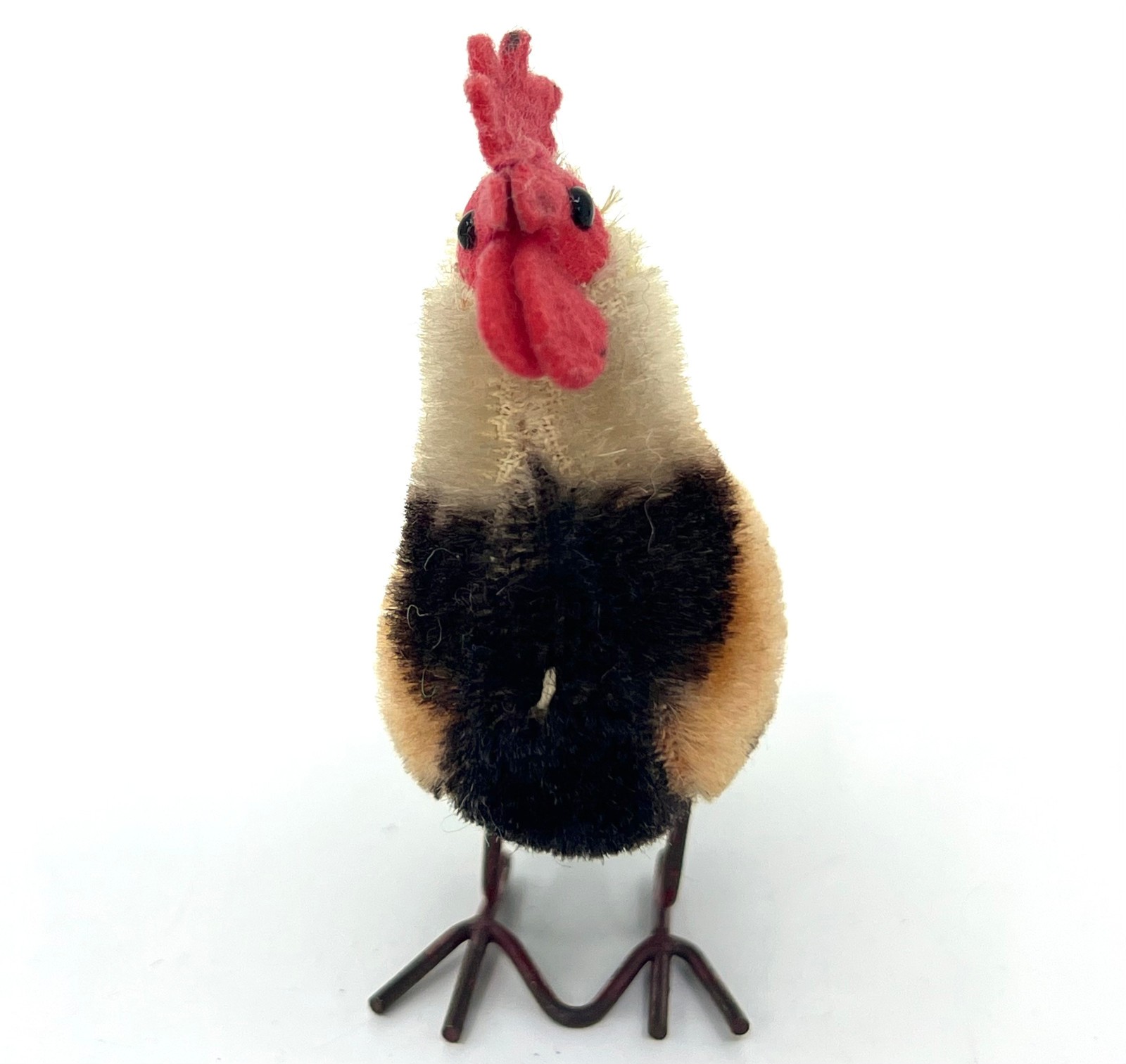 Steiff Rooster Mini 1950s Mohair Metal Legs ID Button and Tag 10cm 4in Vintage
