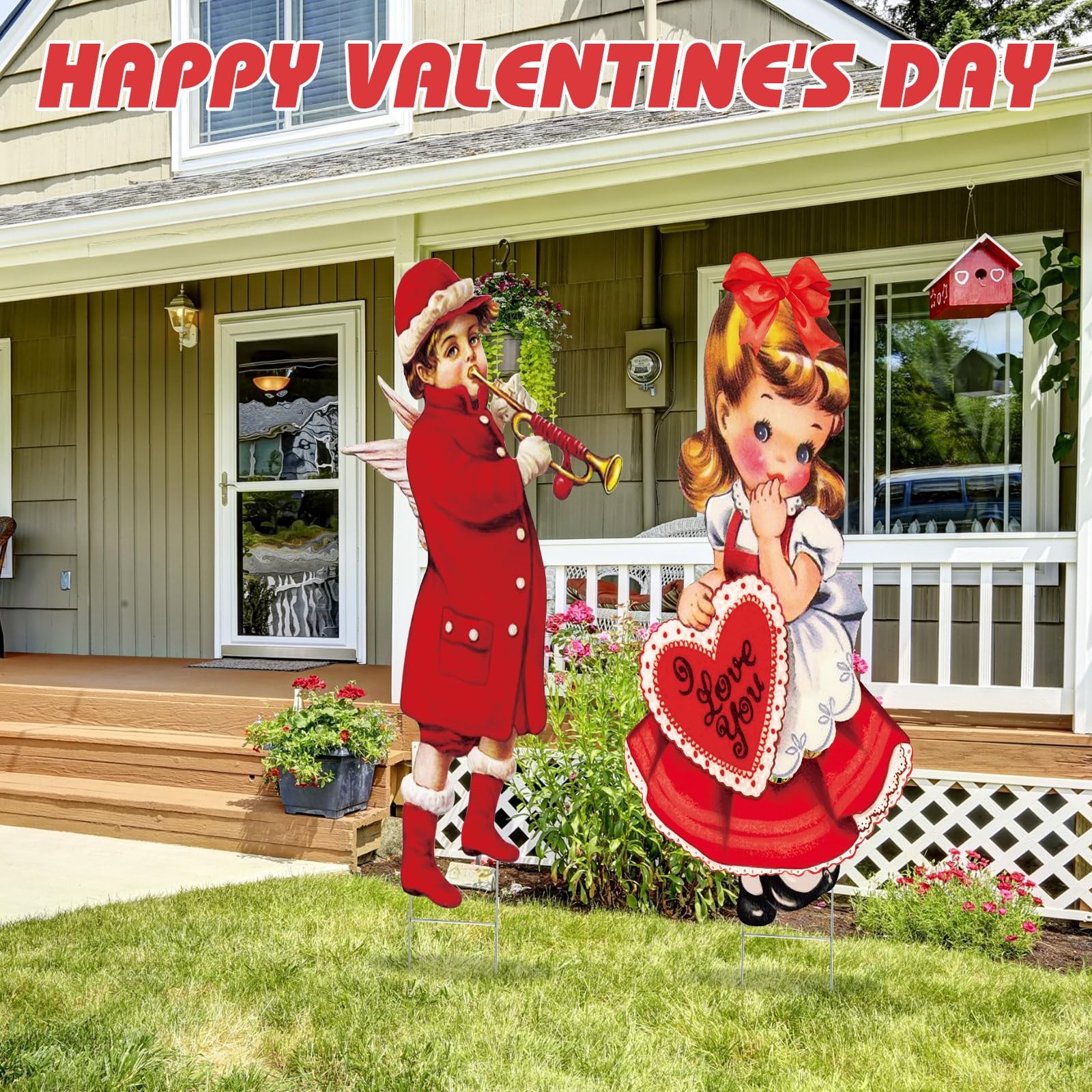 как выглядит 2 Pcs Valentine S Day Yard Signs Valentines Day Outdoor Decorations with Stakes фото