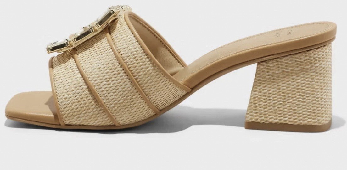 как выглядит New Womens Kathleen Raffia Buckle Block Heels Beige фото