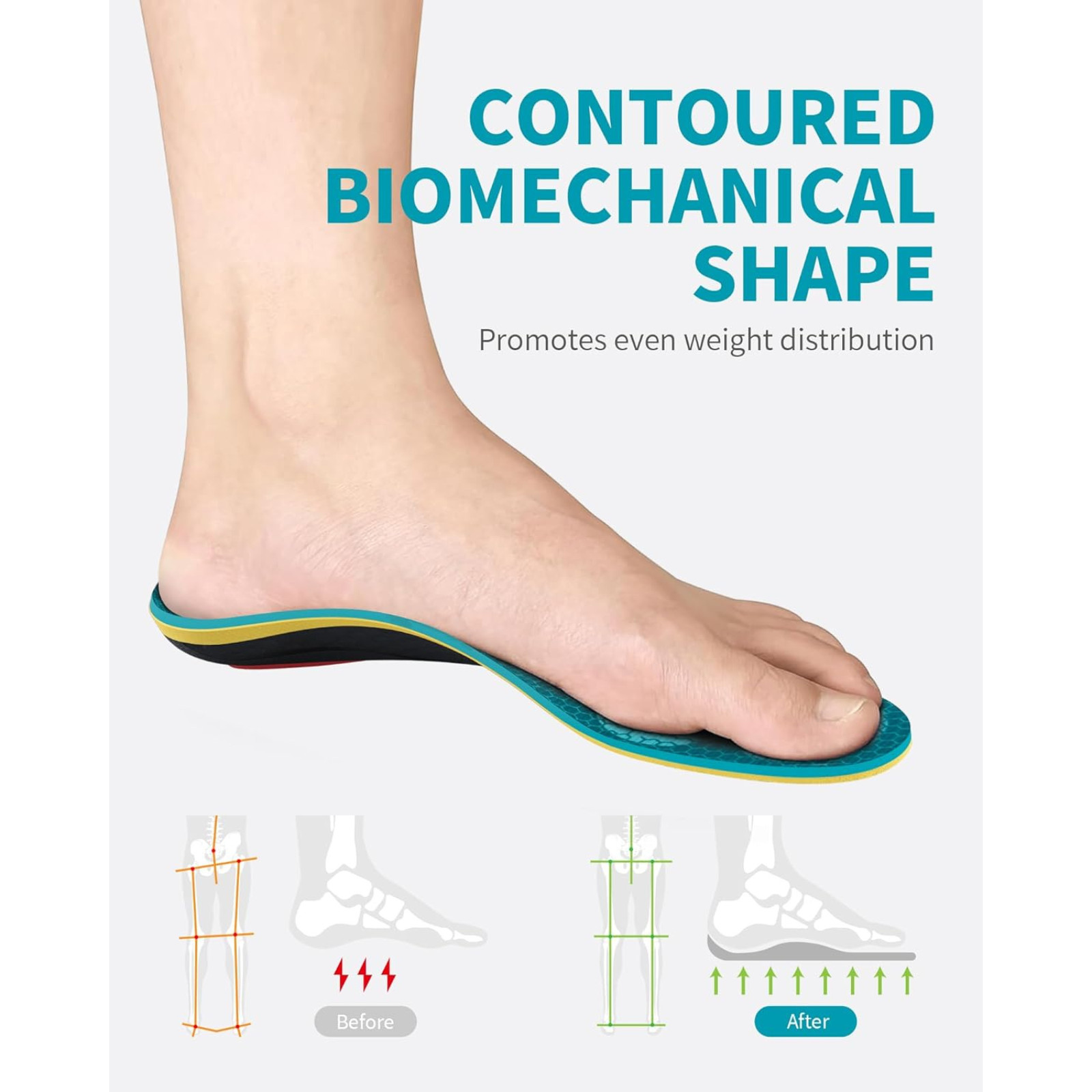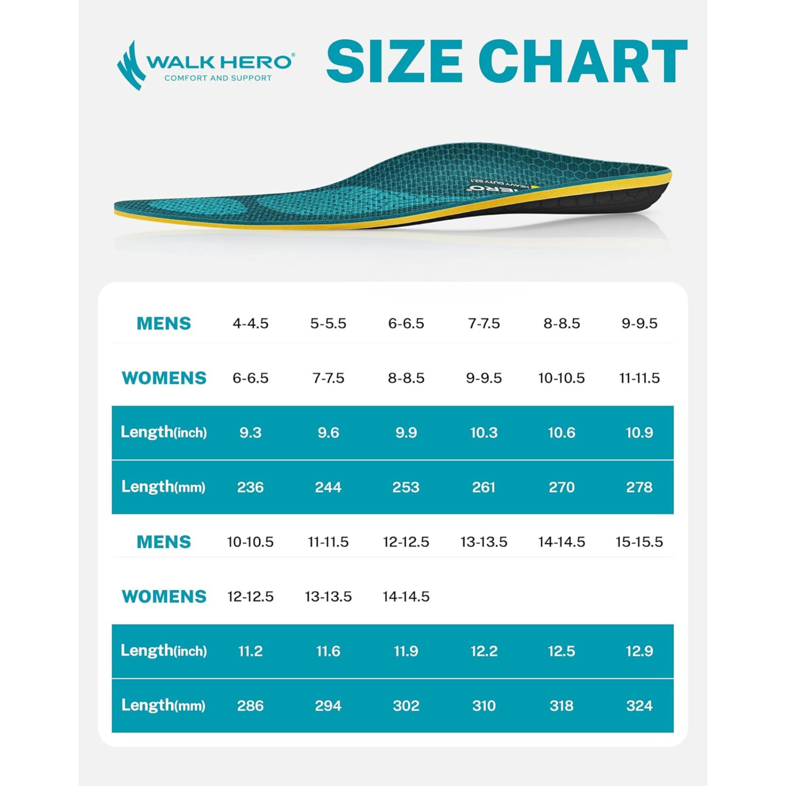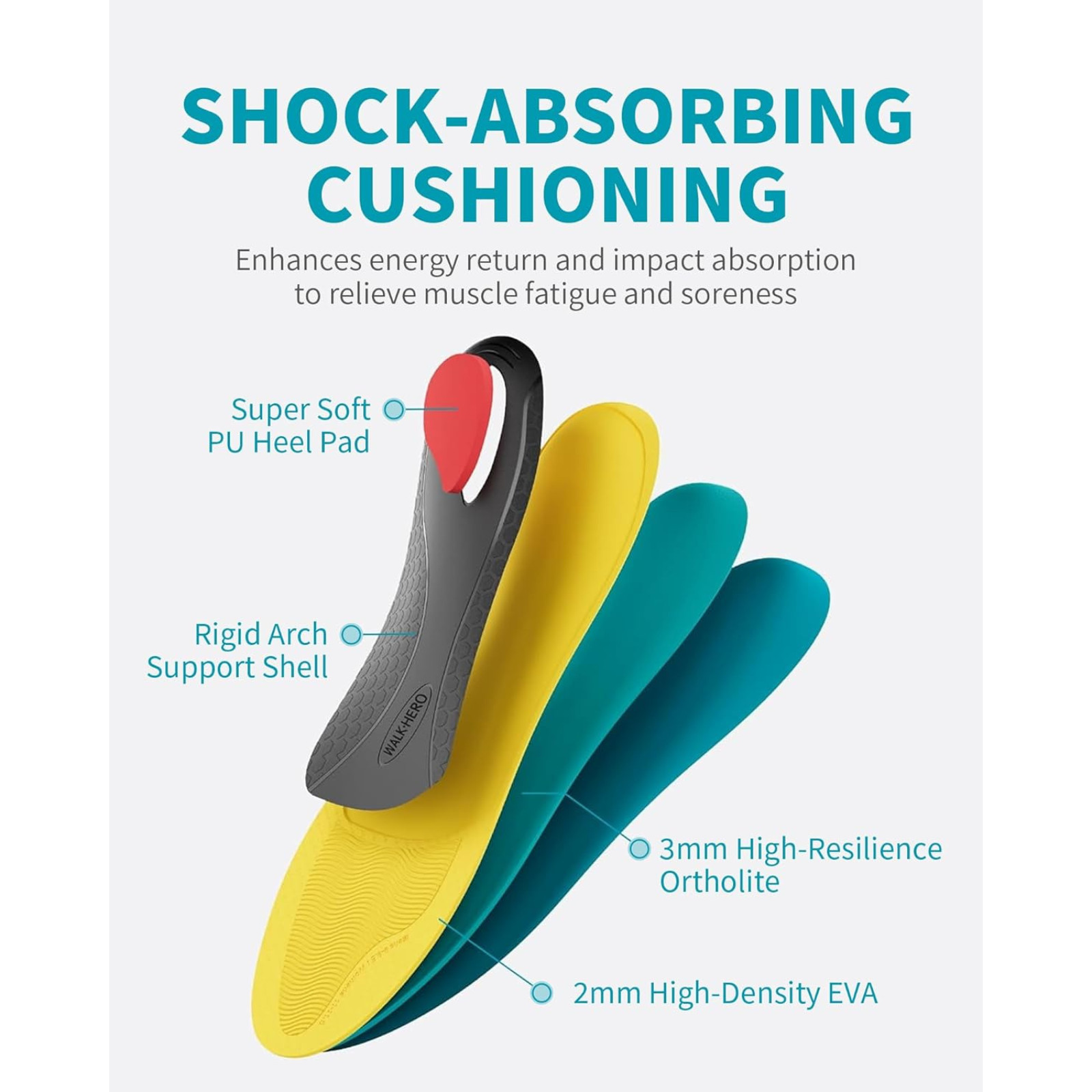 WalkHero Heavy Duty Plantar Fasciitis Insoles, 220 lbs Strong Arch Support Ortho