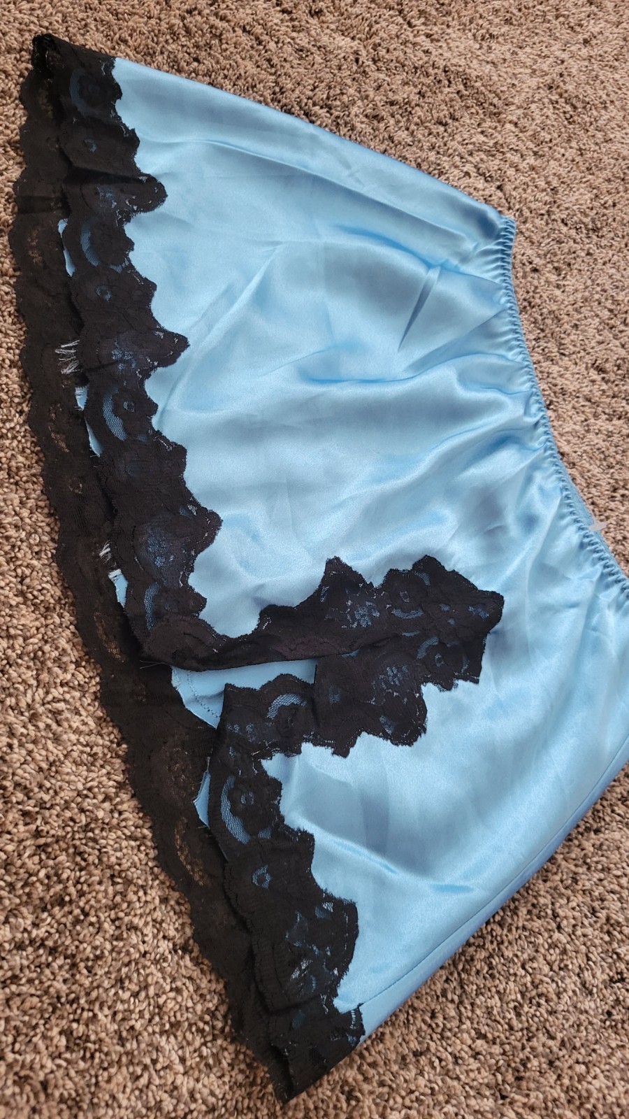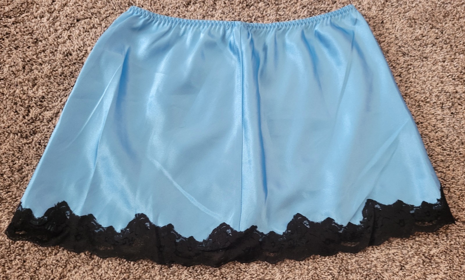 Fredericks of Hollywood mini skirt slip satin lace blu/blk medium