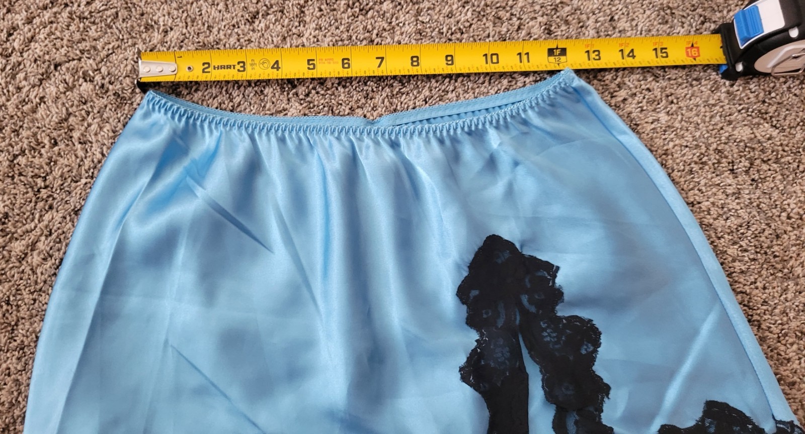 как выглядит Fredericks of Hollywood mini skirt slip satin lace blu/blk medium фото