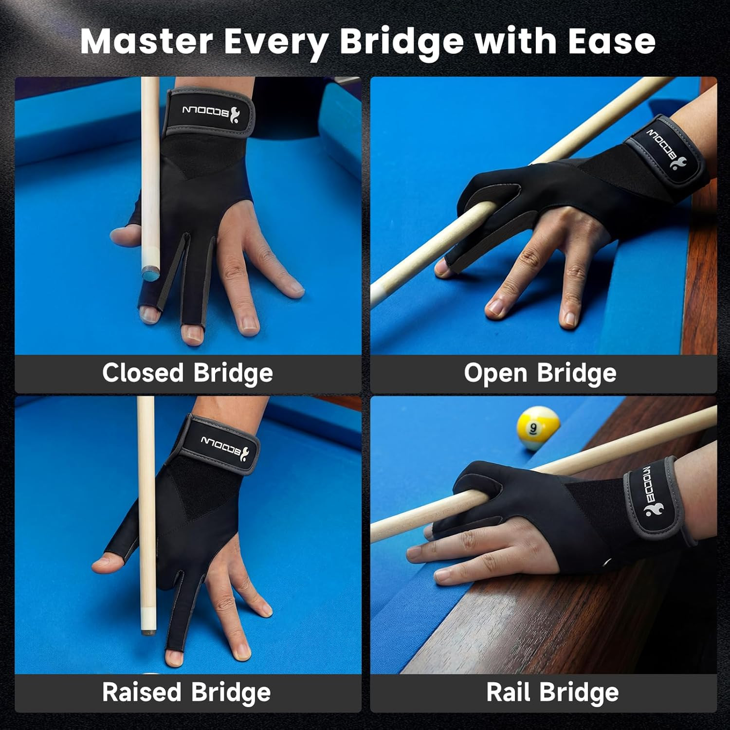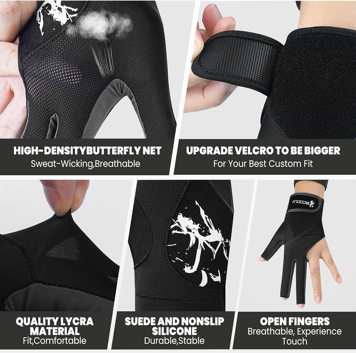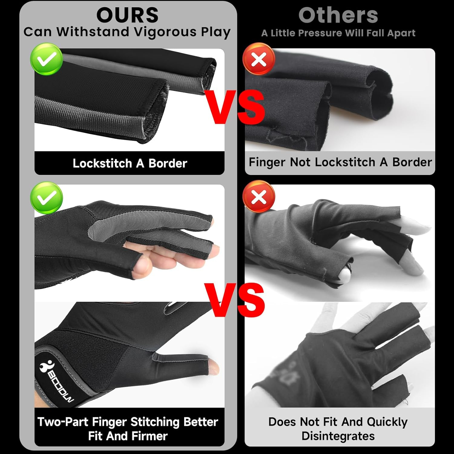Billiard Pool Gloves for Left Hand 3 Finger, Splicing Process, Snooker Cue Sport