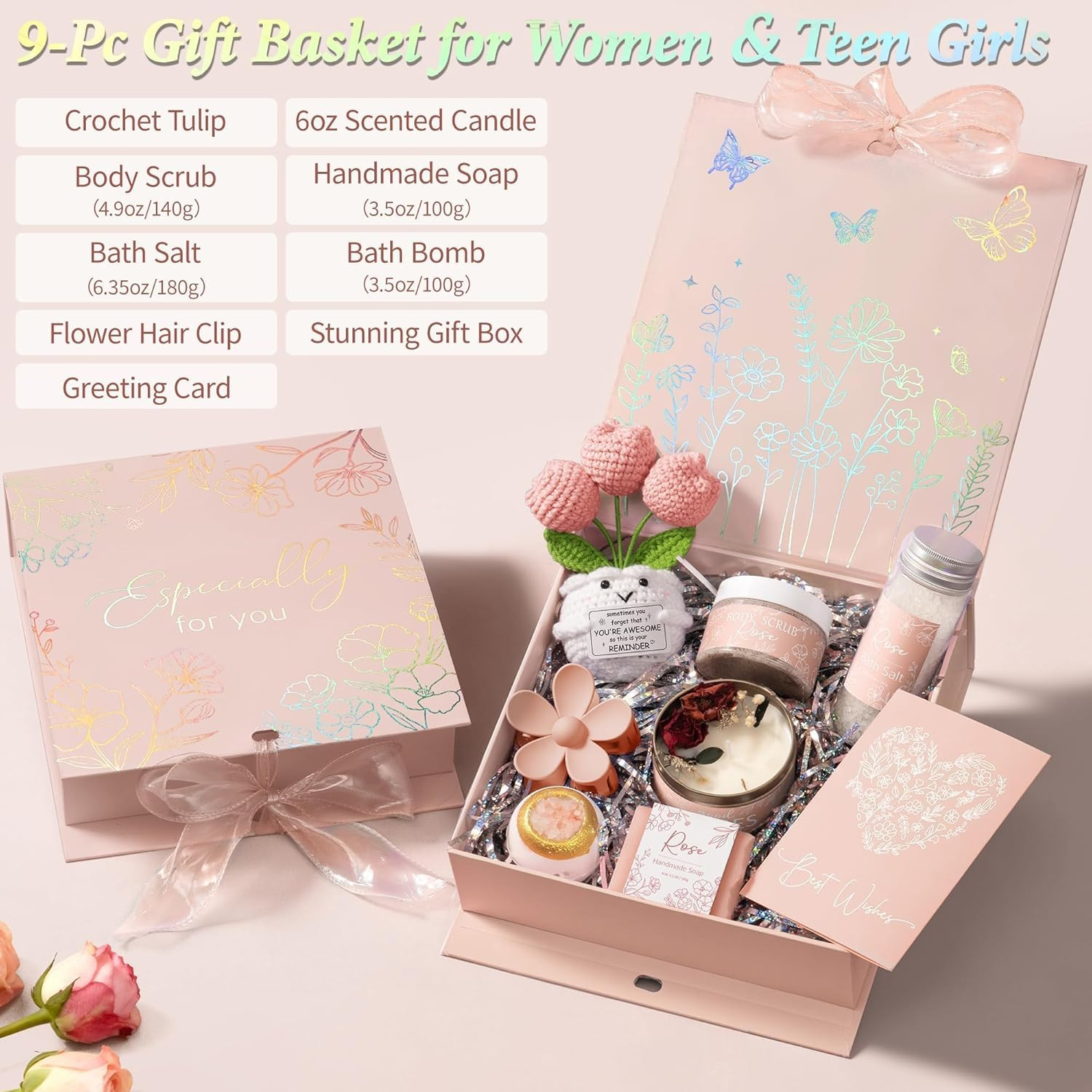 Spa Gifts for Women Bath Gift Set, Rose Relaxing Spa Gift Baskets Home Bath Set