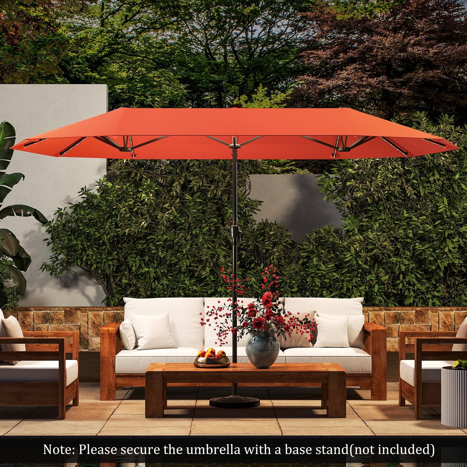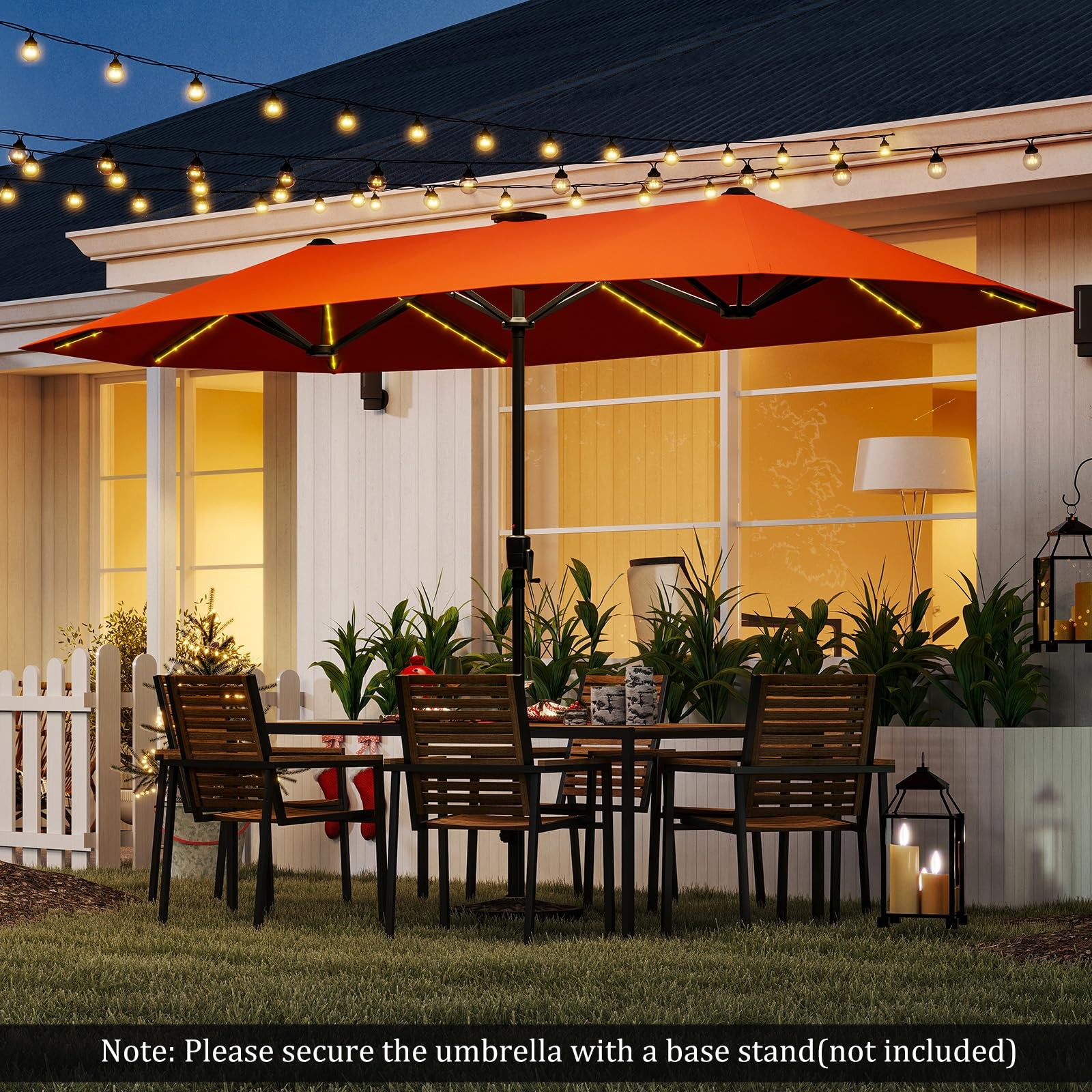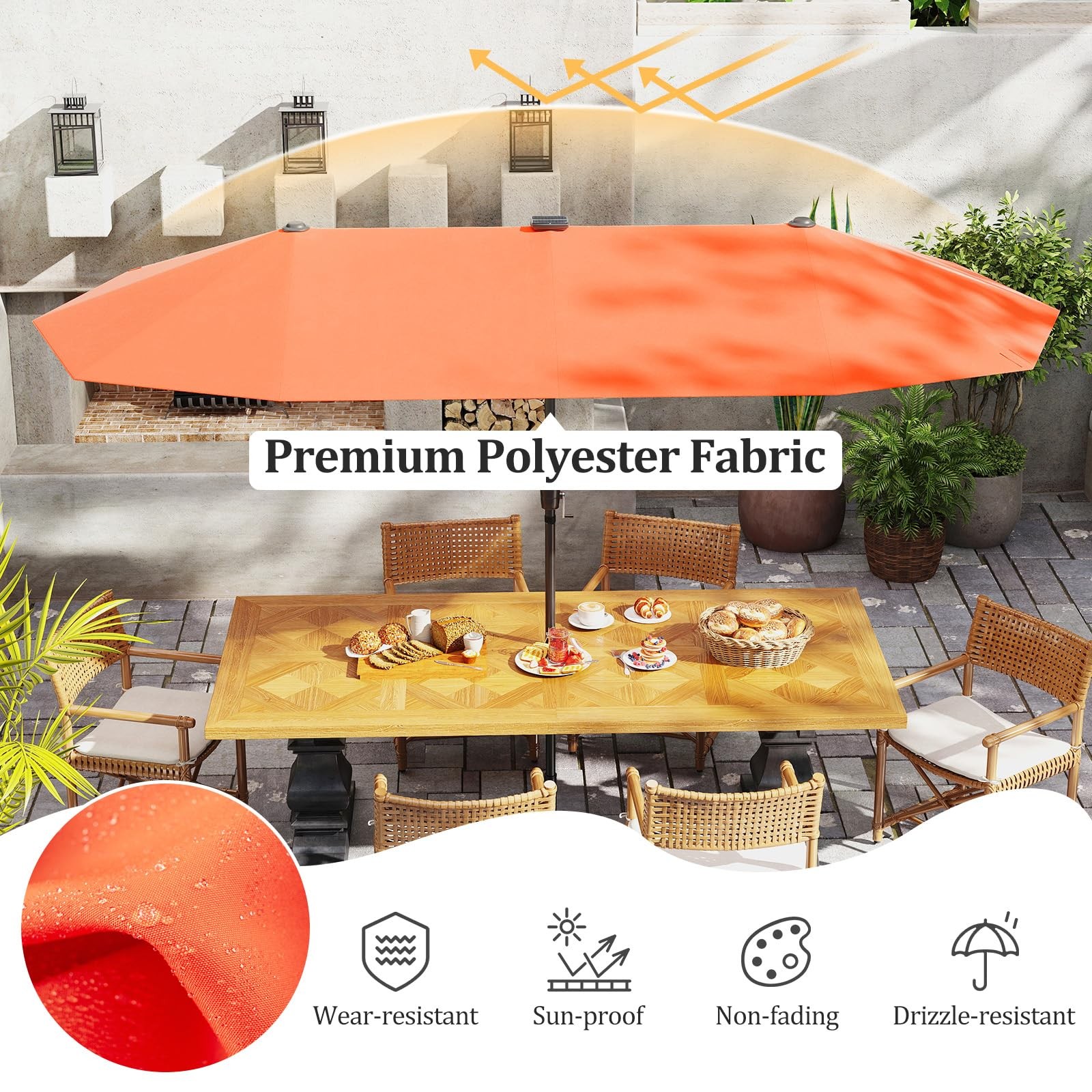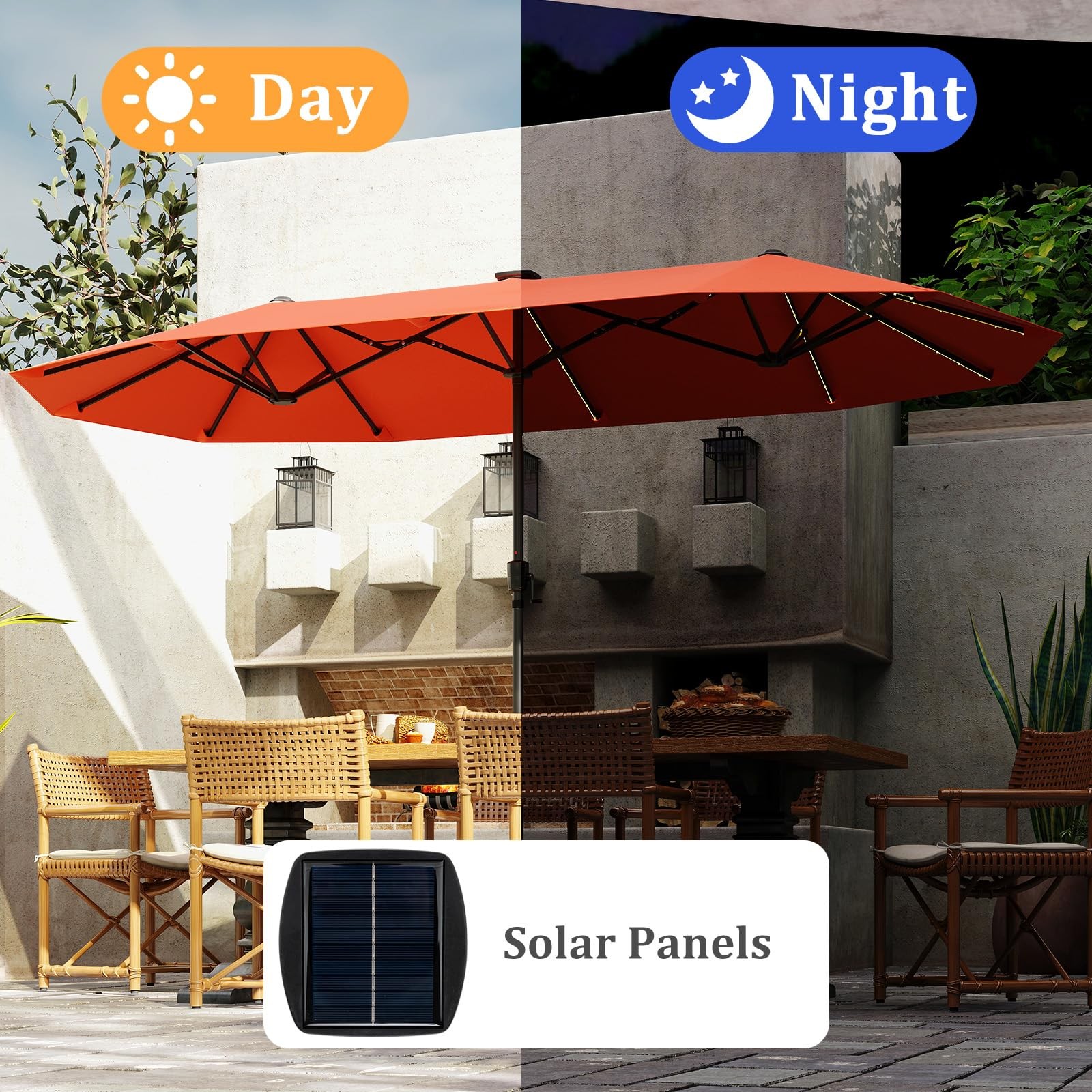 13 FT Double-sided Patio Umbrella with Solar Lights Crank Handle 12 Heavy-Duty