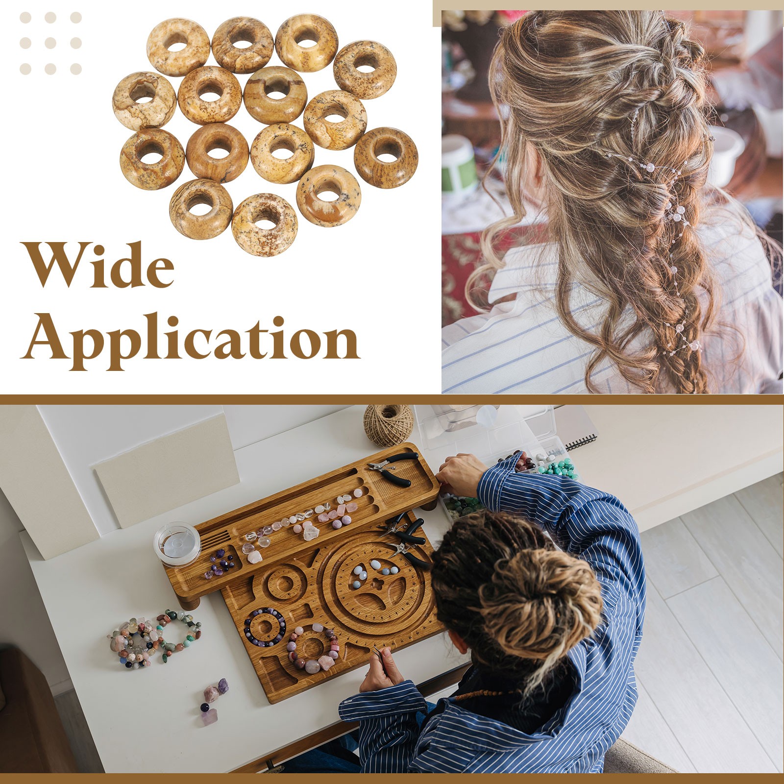 15pcs Natural Stone Beads 8x14mm Large Hole Craft Beads, Multicolor
