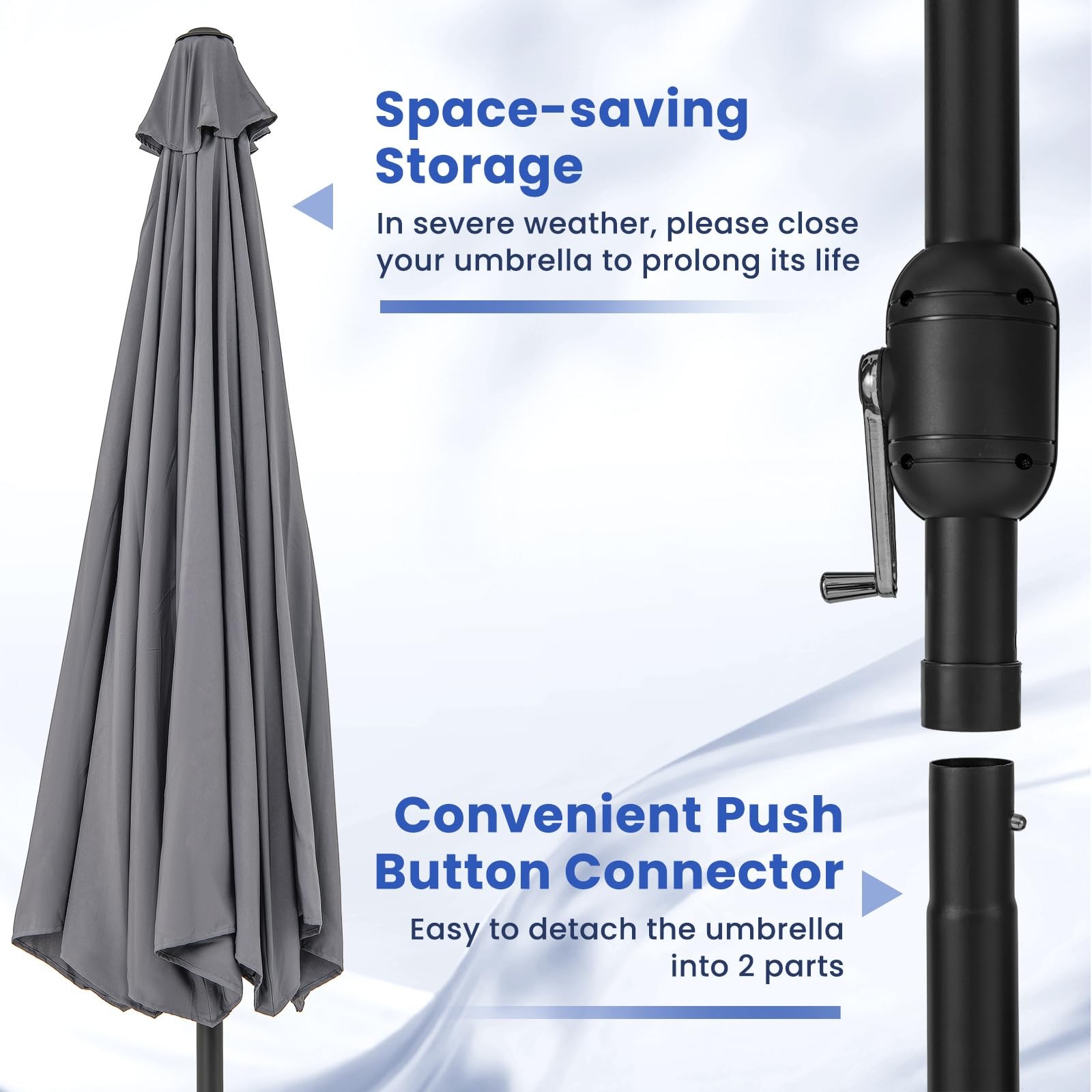 12 FT Patio Umbrella, Outdoor Market Umbrella with Crank Handle, 8 Sturdy Ribs