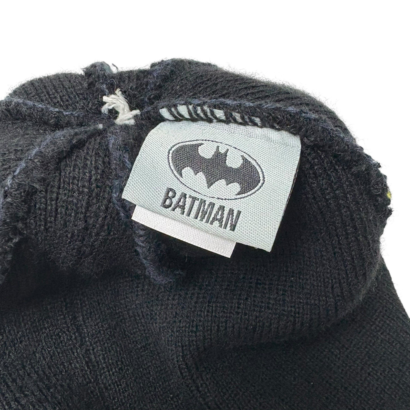 как выглядит Batman Marled Stripe Knit Cuff Pom Pom Beanie Hat Black Yellow Kids OS NWT фото