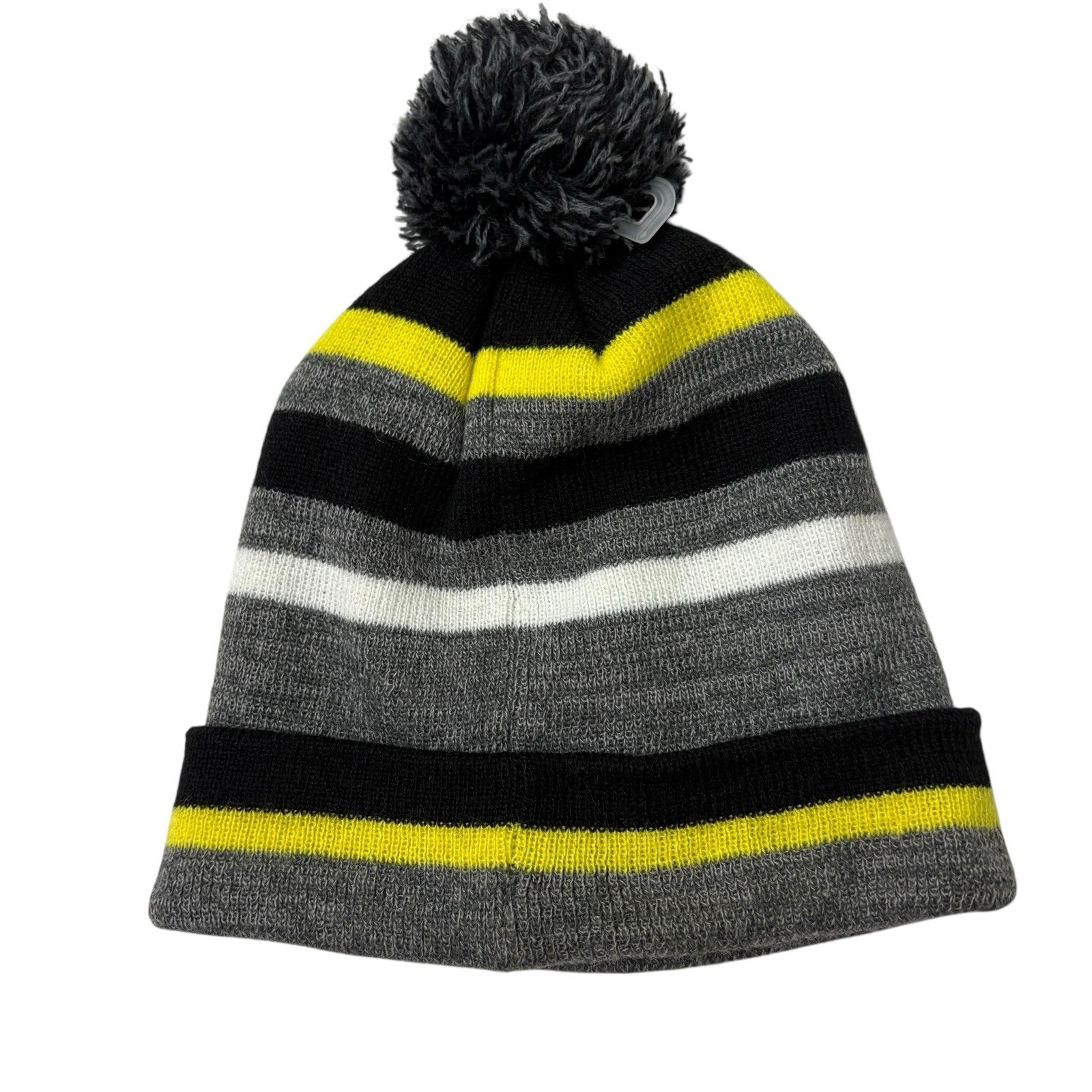 Batman Marled Stripe Knit Cuff Pom Pom Beanie Hat Black Yellow Kids OS NWT