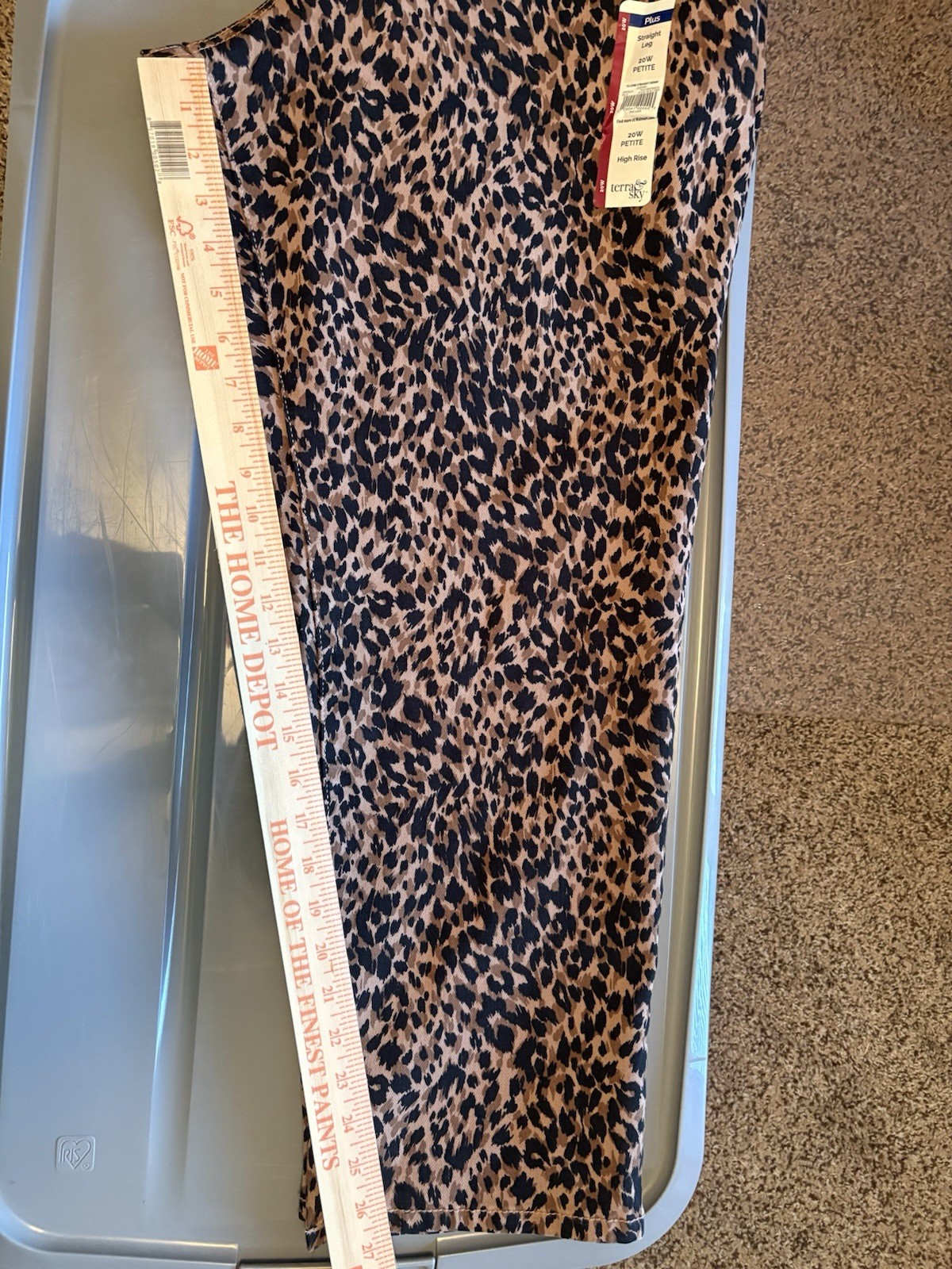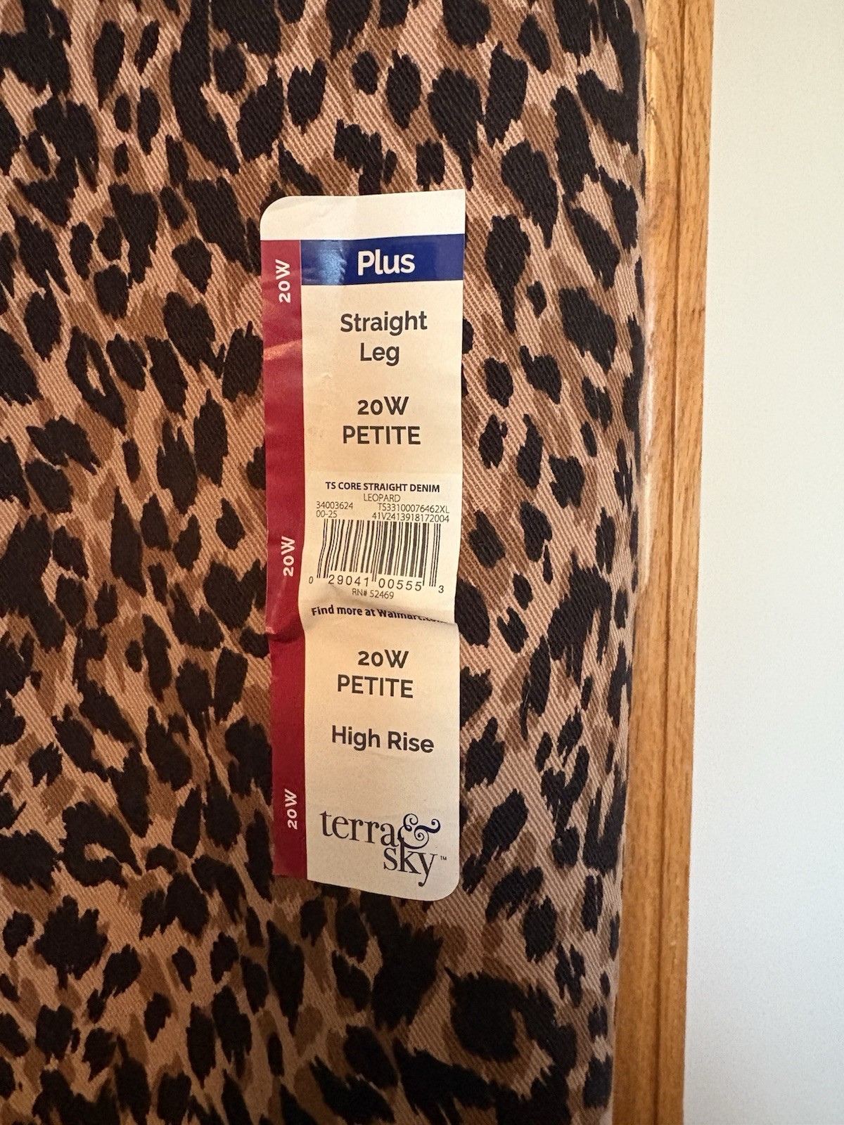как выглядит Terra Sky Womens Leopard Straight Jeans 20W Petite NWT Animal Print High Rise фото