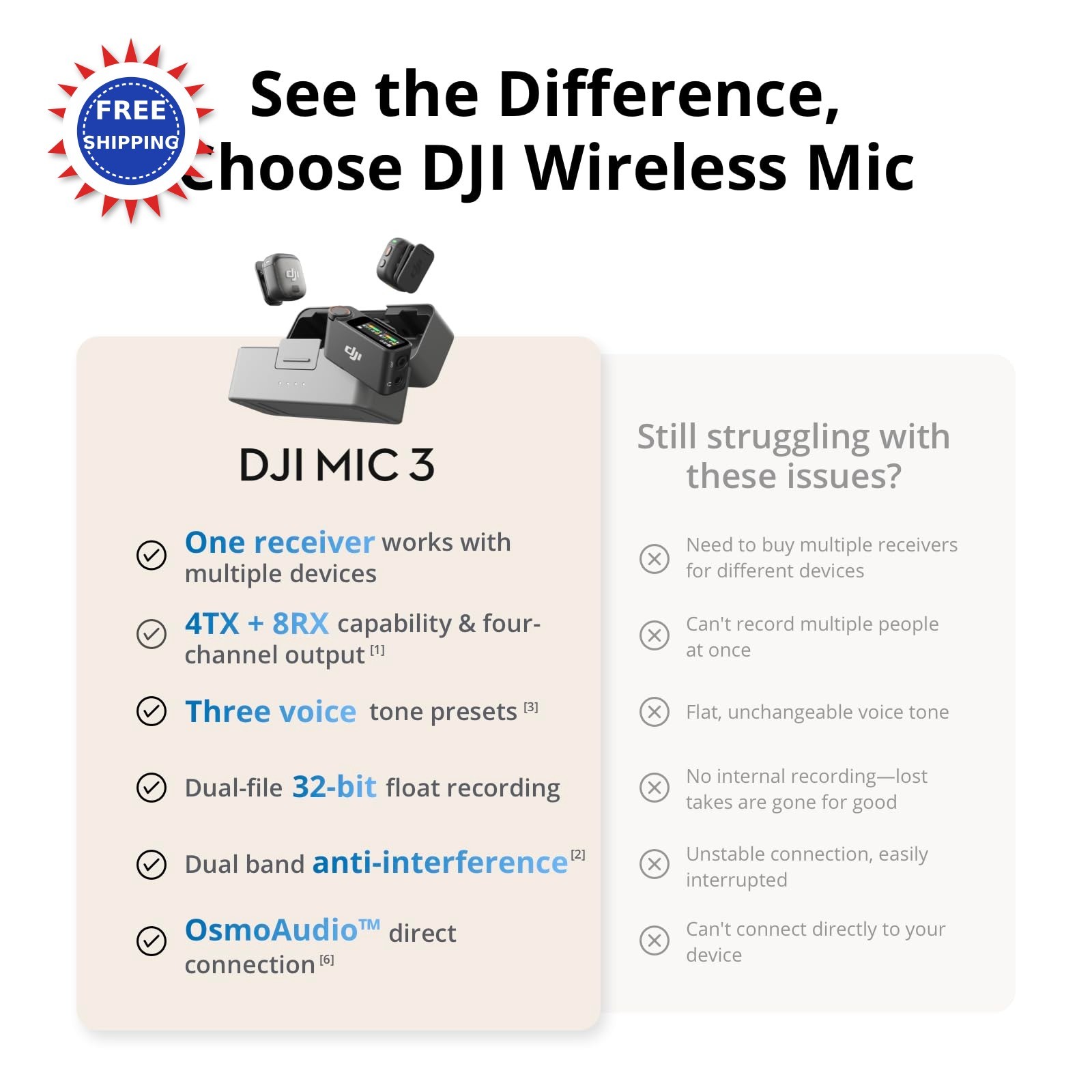 Wireless Microphone DJI Mic 3 Transmitter for iPhone Camera Android Lightweight