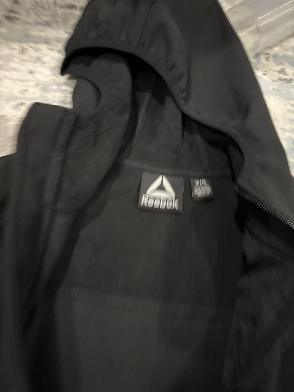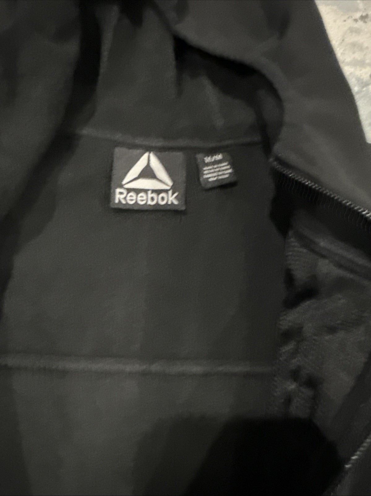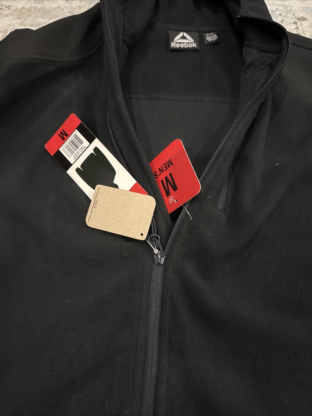 как выглядит Reebok Mens M Black Zip Front Hooded Jacket Mixed Media Fleece Hoodie фото