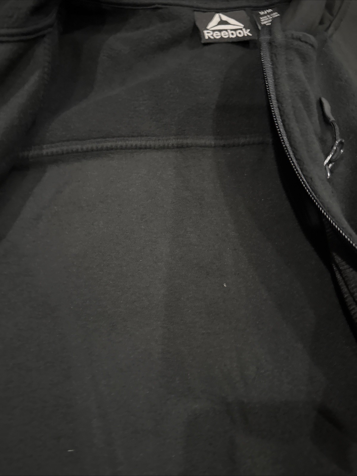 Reebok Men's M Black Zip Front Hooded Jacket Mixed Media Fleece Hoodie