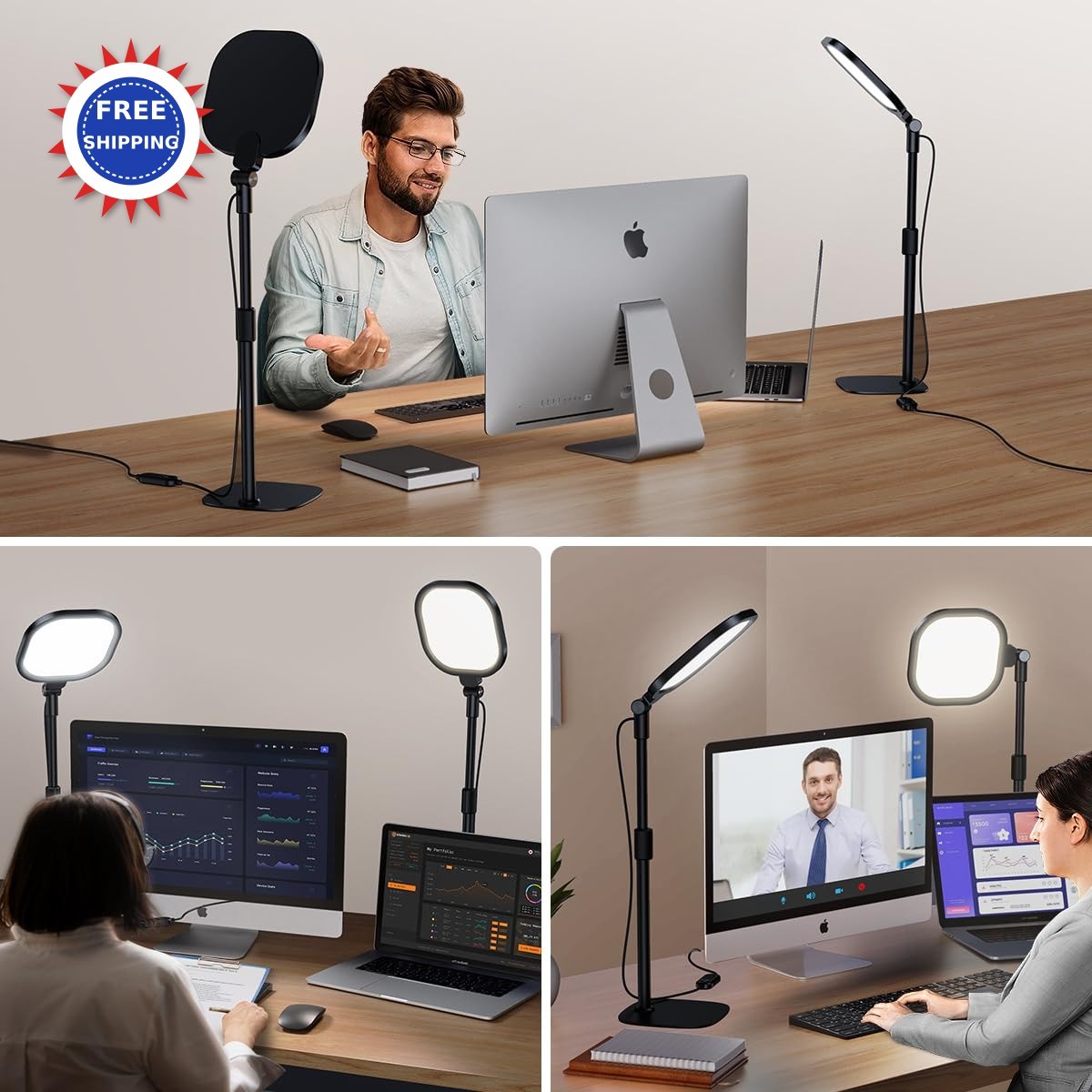 Desktop Video Conference Lighting 2Pcs Zoom Meeting Adjustable Brightness Color