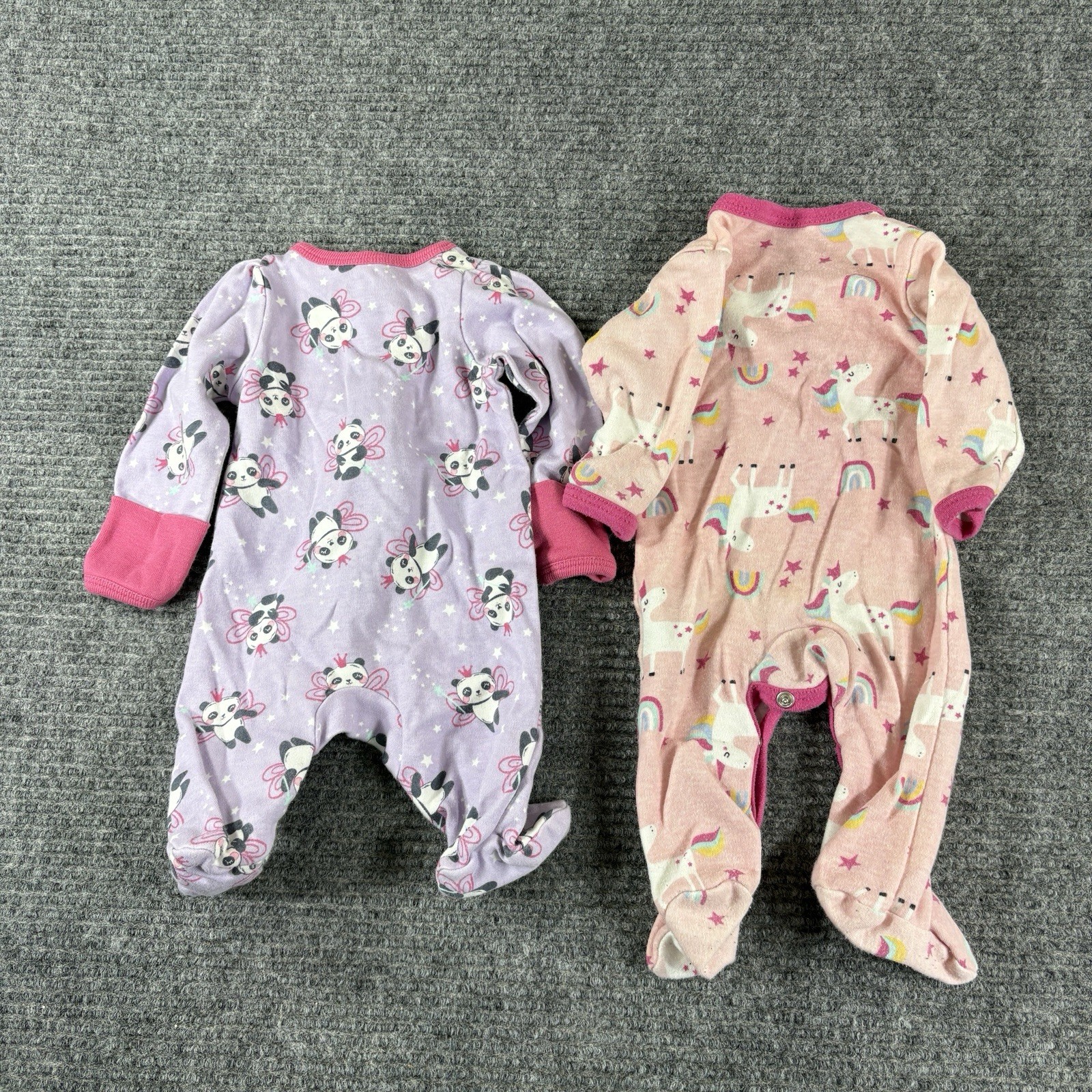 как выглядит Lot of 6 girl newborn/0-3 mo footed long sleeve sleepers zip/snap various brands фото