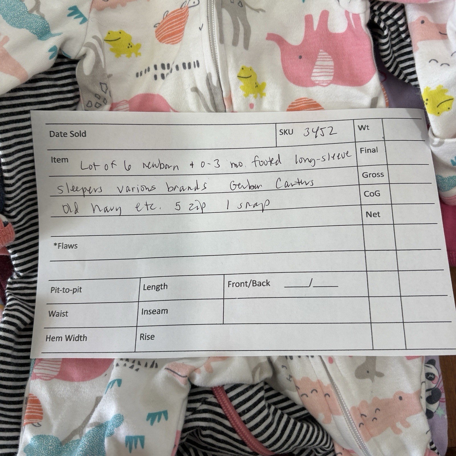 Lot of 6 girl newborn/0-3 mo footed long sleeve sleepers zip/snap various brands