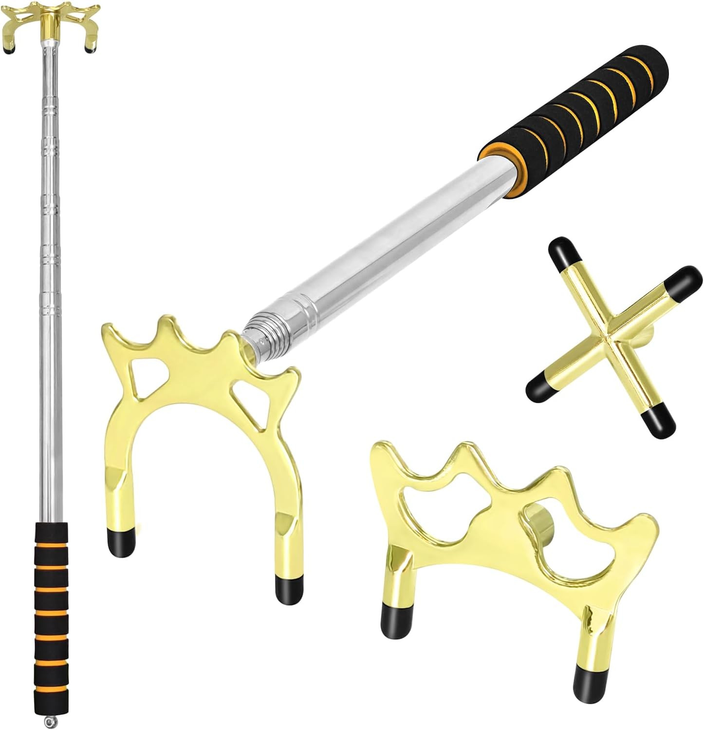 Retractable Pool Cue Bridge Stick Set with 3 Removable Brass Bridge Heads Snooke