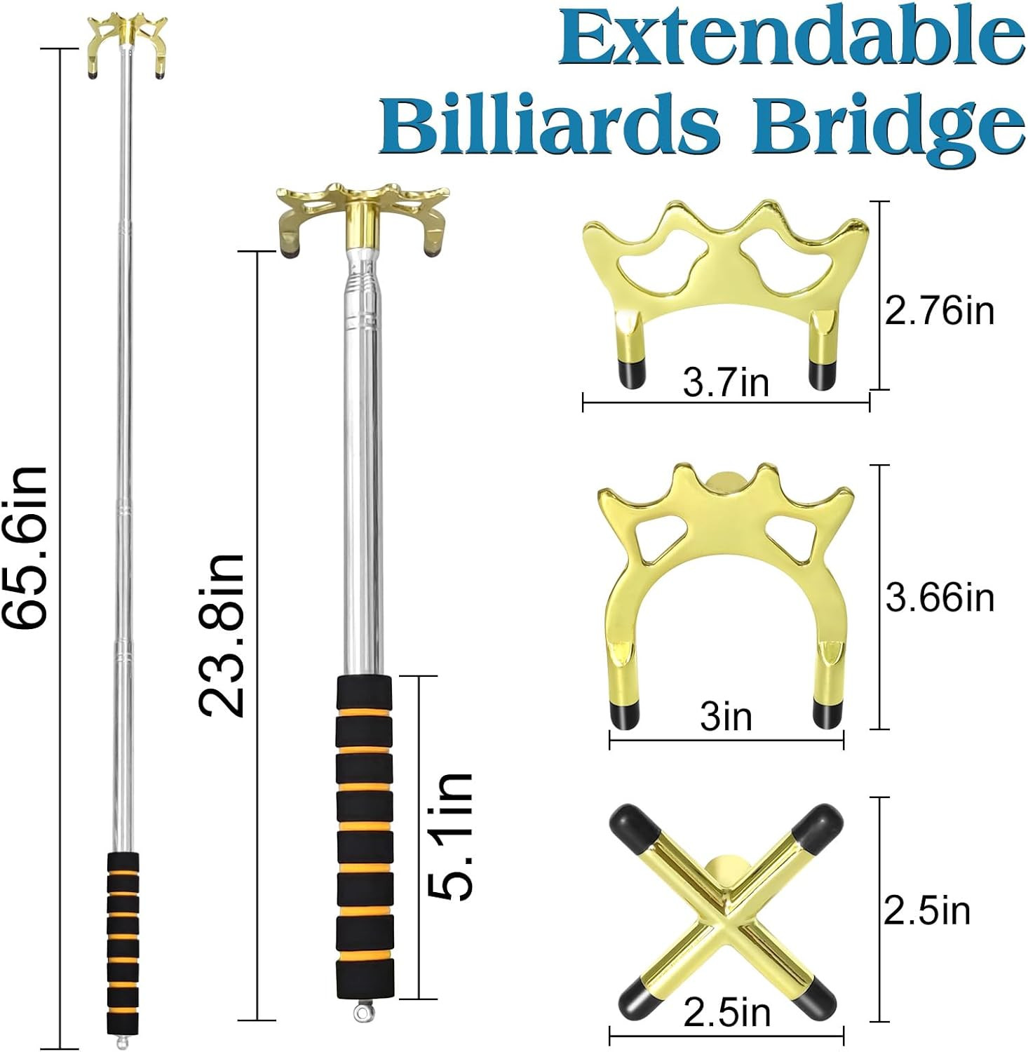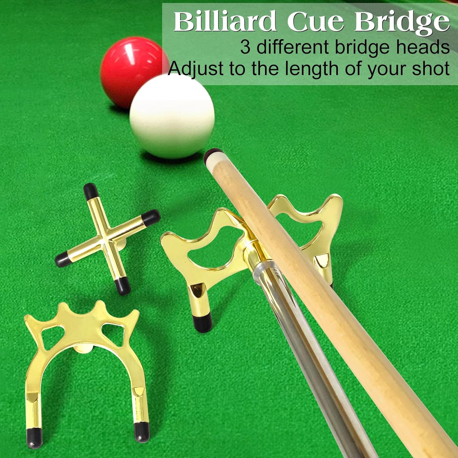 Included Components: Retractable Pool Cue Stick Bridge with 3 Different Interchangeabl