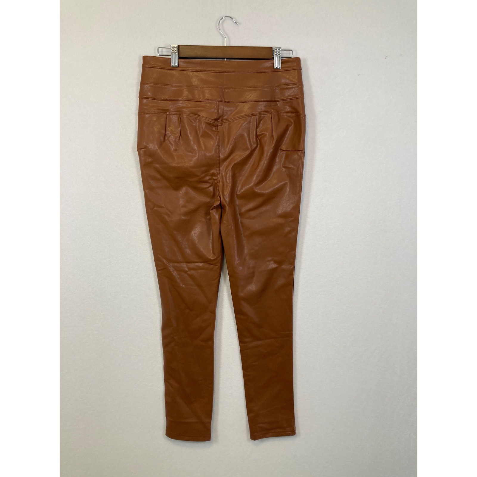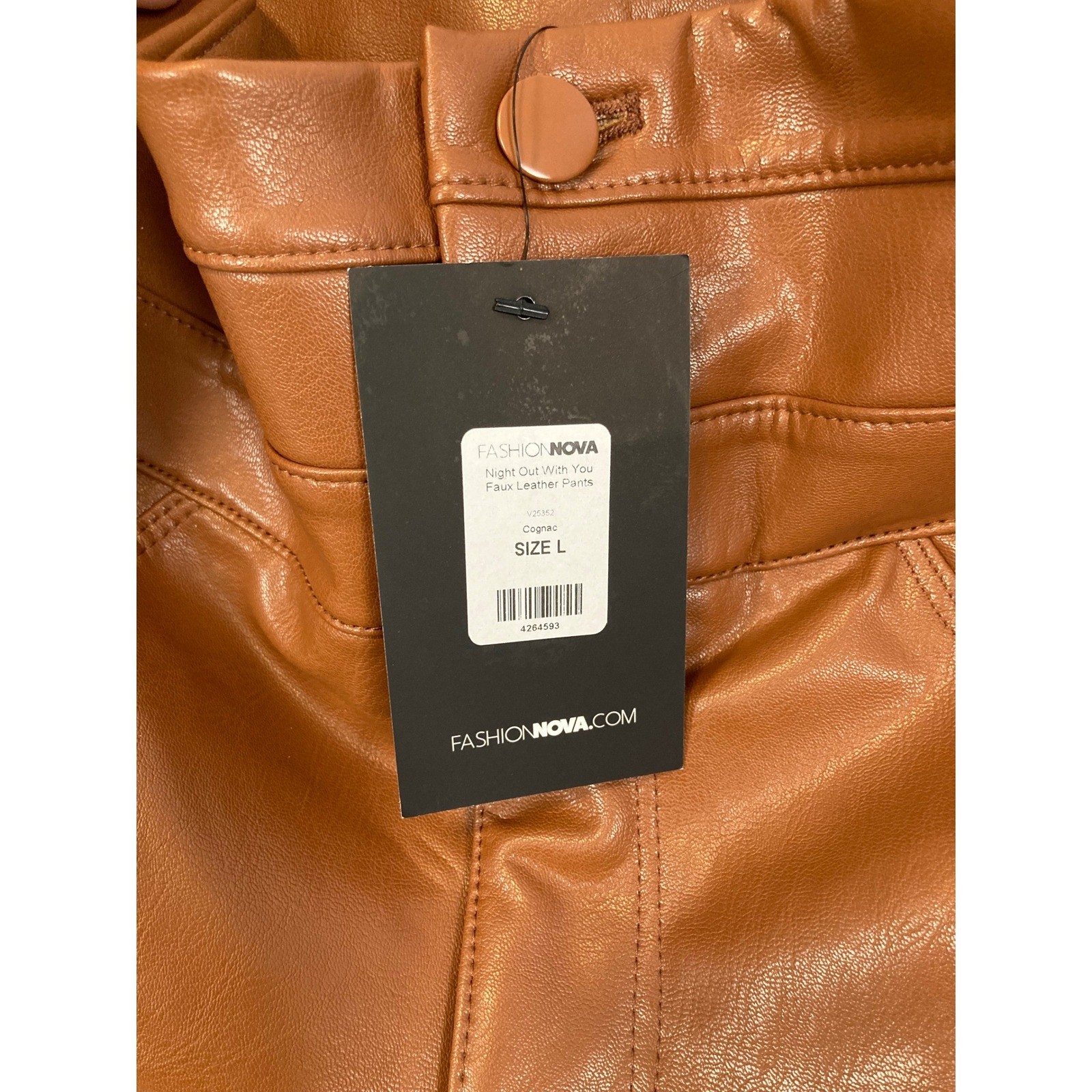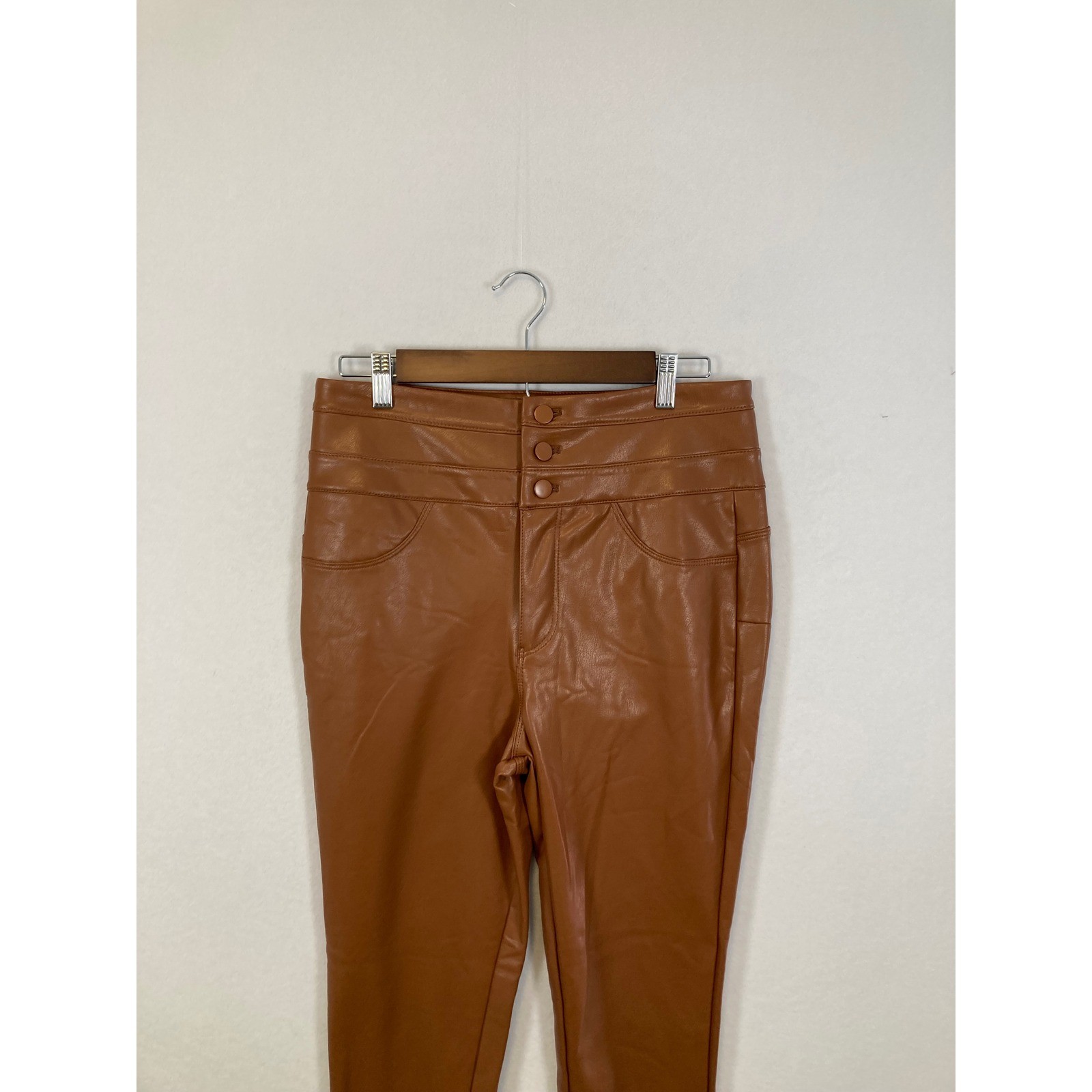 как выглядит Fashion Nova Cognac Faux Leather High Waisted Triple Button Pants Brown L NEW фото