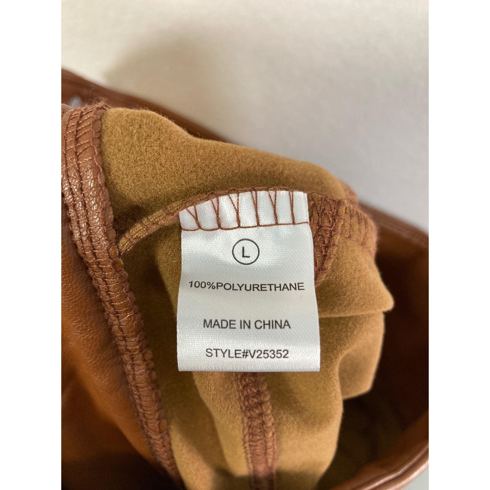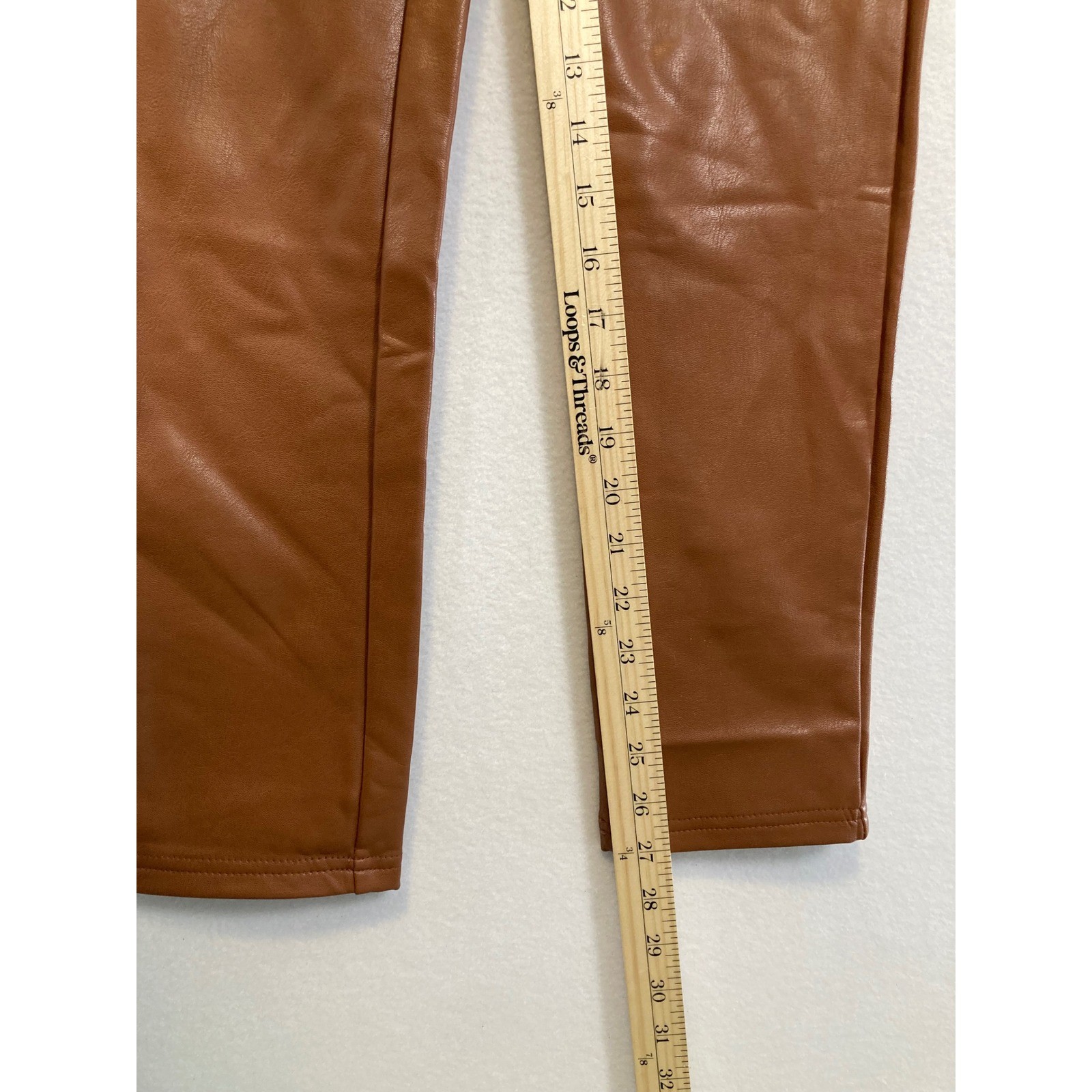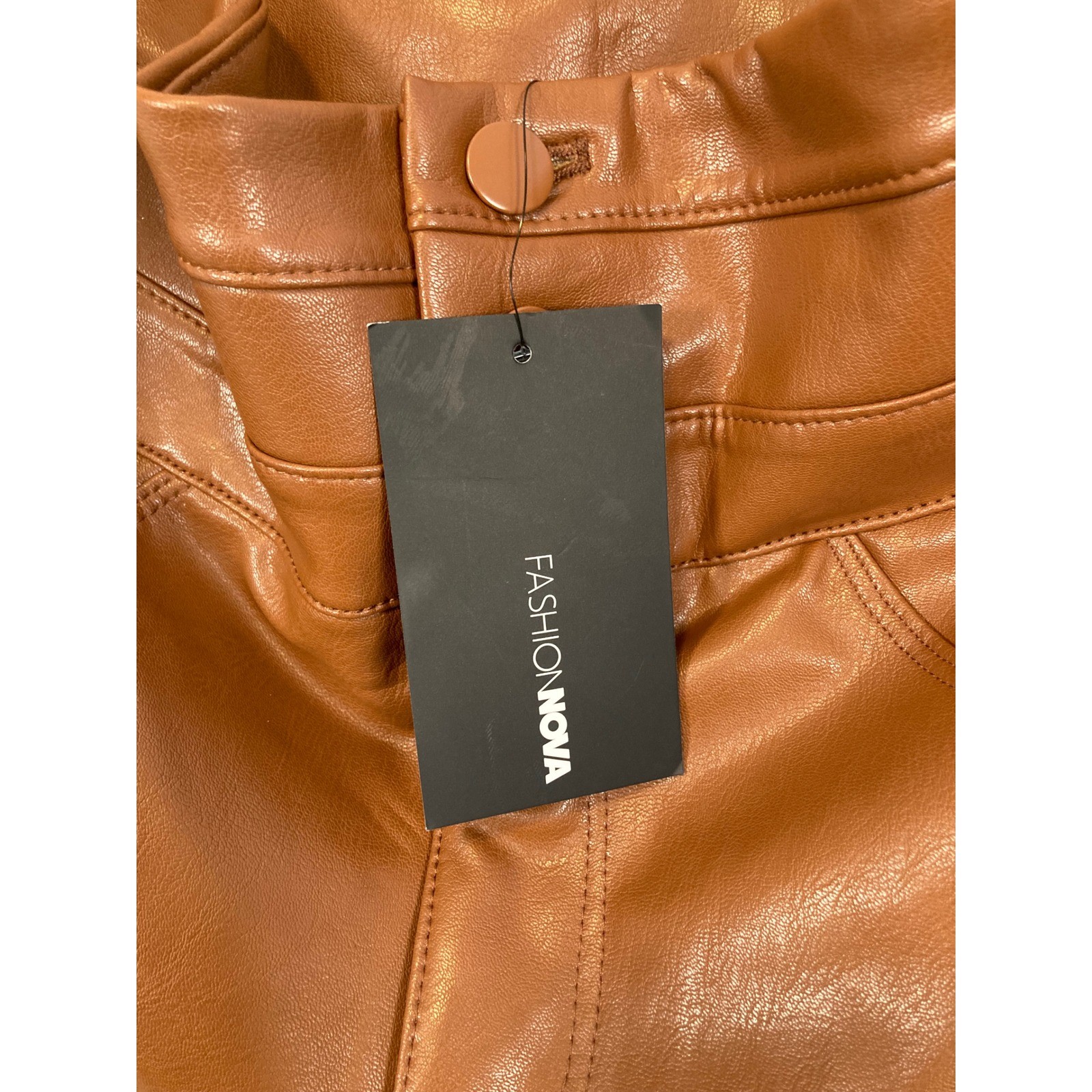 как выглядит Fashion Nova Cognac Faux Leather High Waisted Triple Button Pants Brown L NEW фото