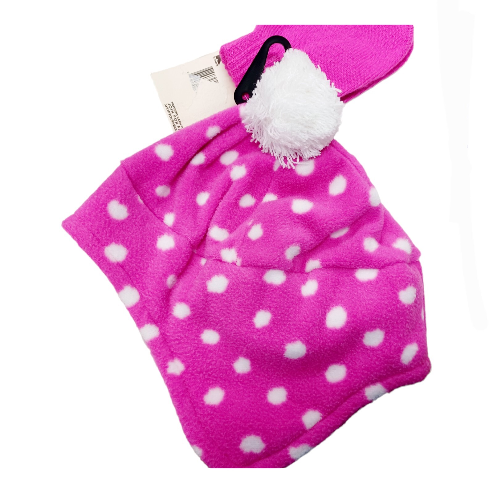 Wonderkids Toddler Girls Pink Polka Dot Fleece Hat/Mittens Set-Ages 1-2