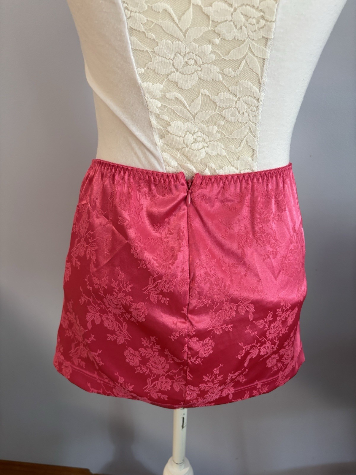 как выглядит Fredericks Of Hollywood Mini Skirt Pink Silky Back Zipper Elastic Waist Sz M EUC фото