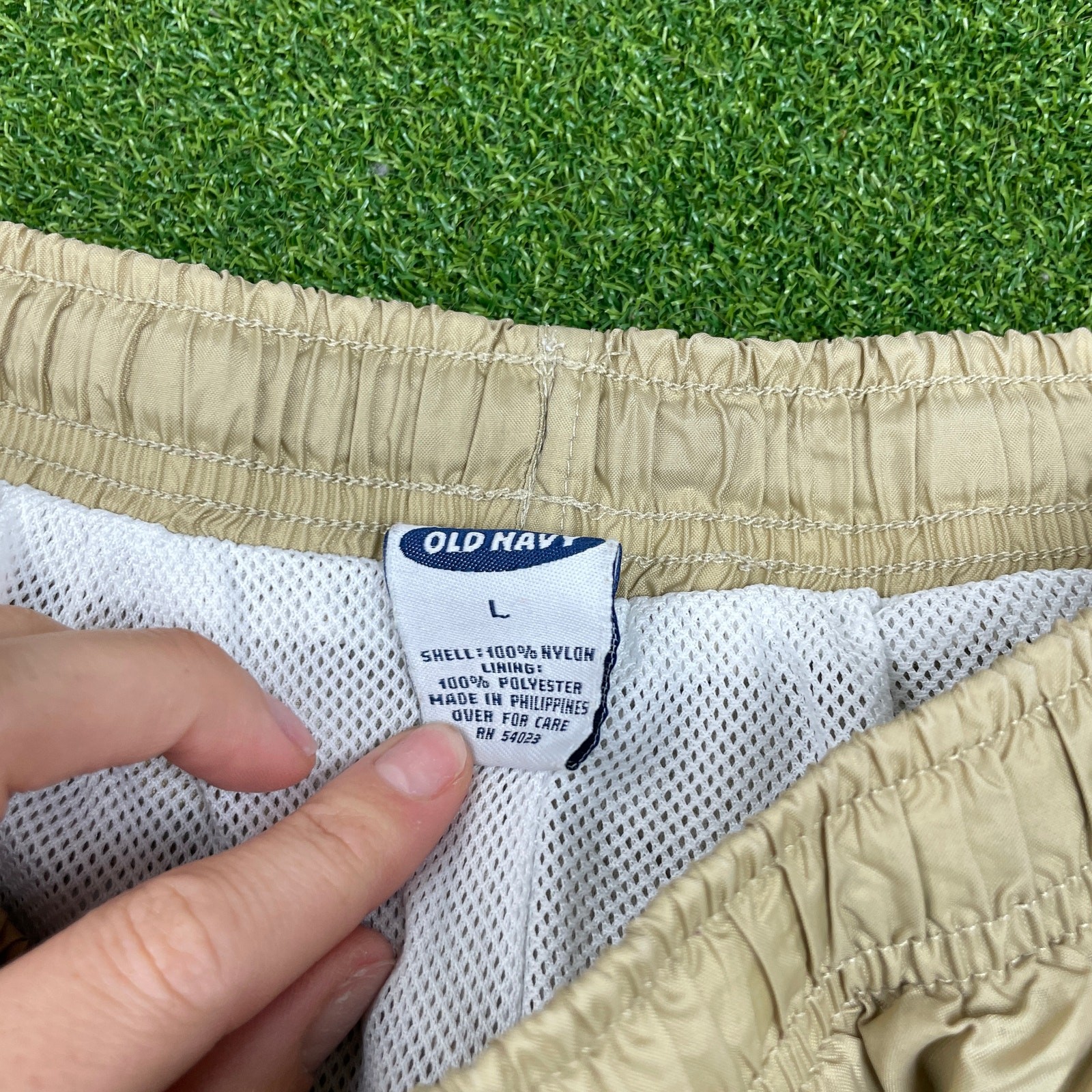 Vintage Y2K Old Navy Beige Nylon Windbreaker Track Pants Sz L