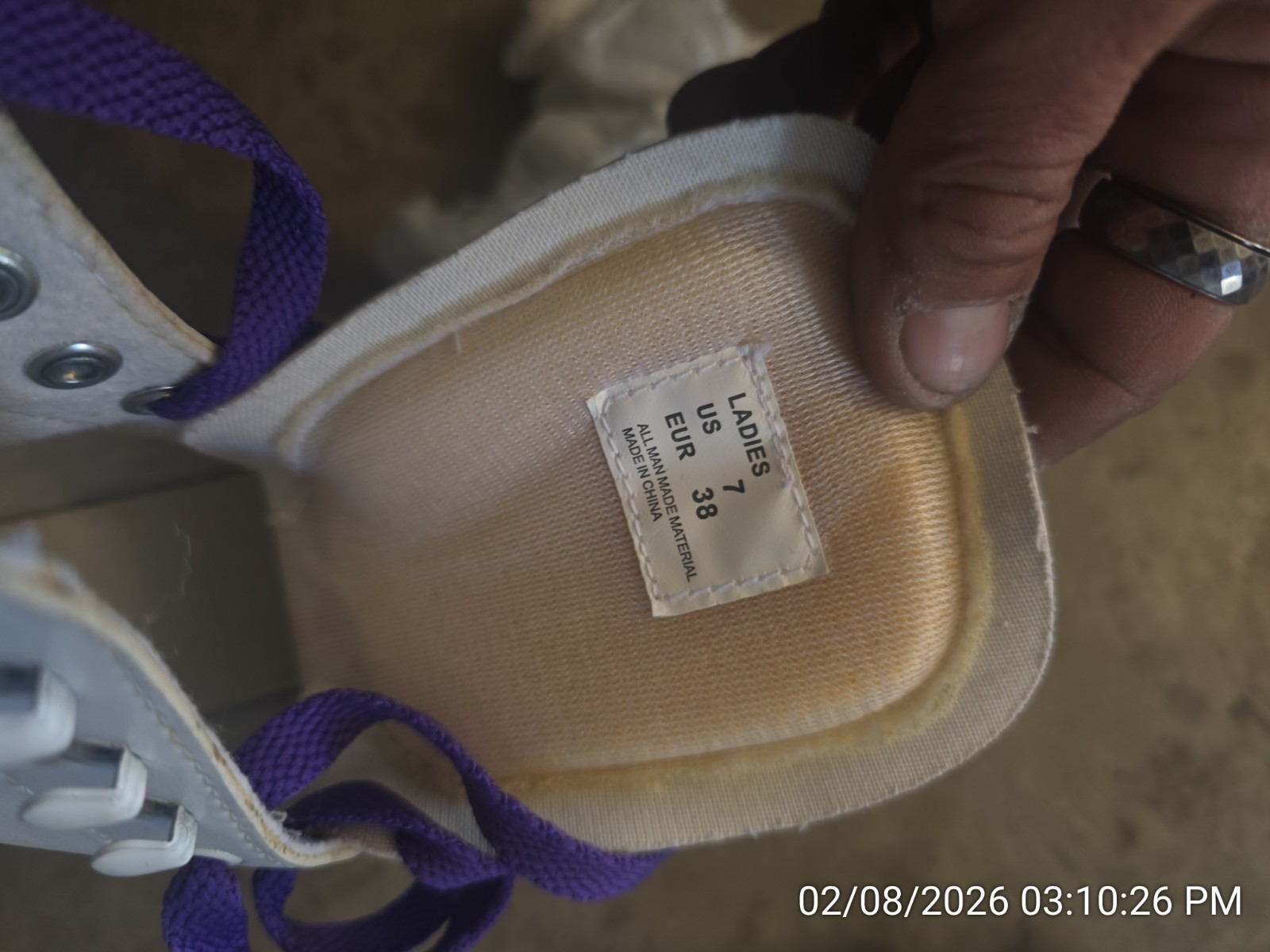 как выглядит Women s Chicago Quad Roller Skates Size 7  White Purple Wheels  Great фото