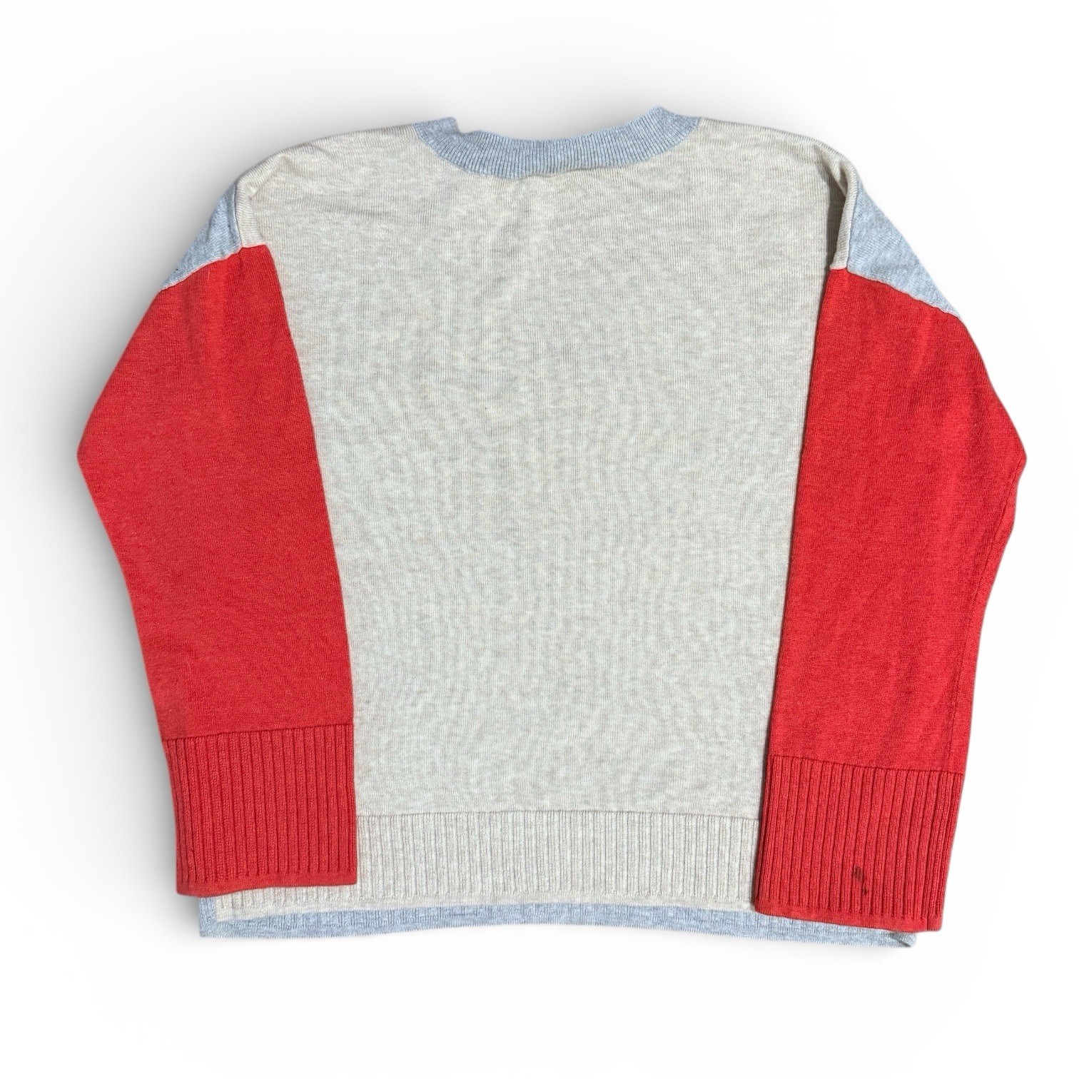 Lilla P Colorblock V-Neck Sweater Women s XS Gray Red Cream Lightweight Knit
