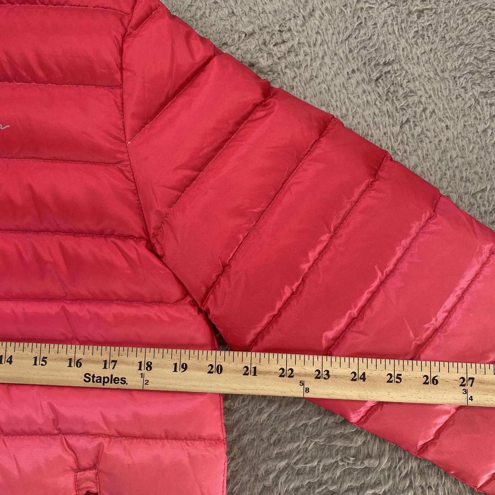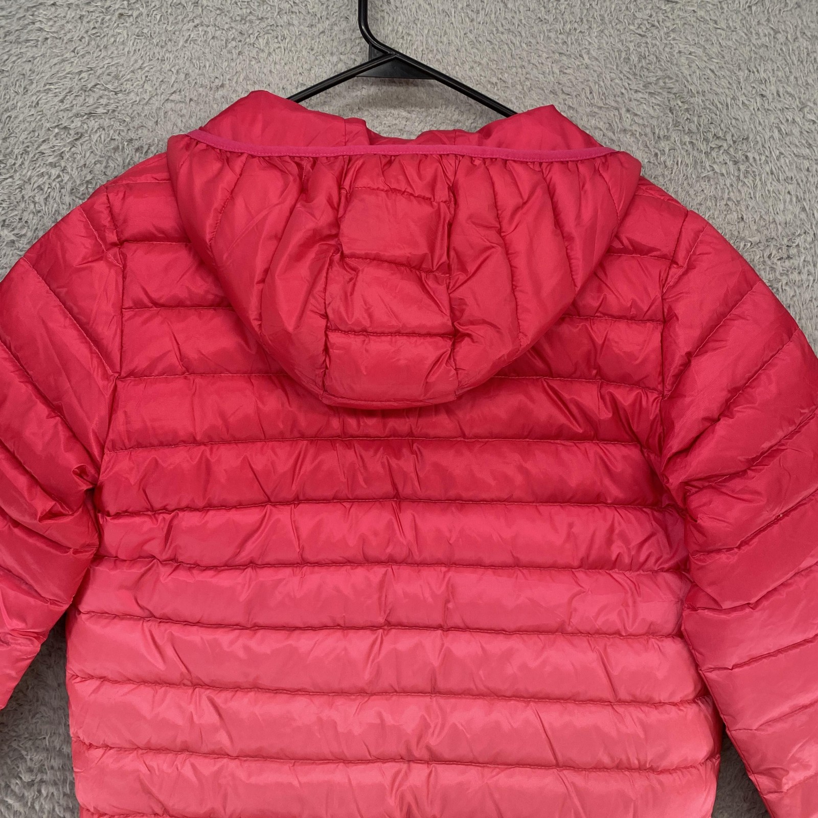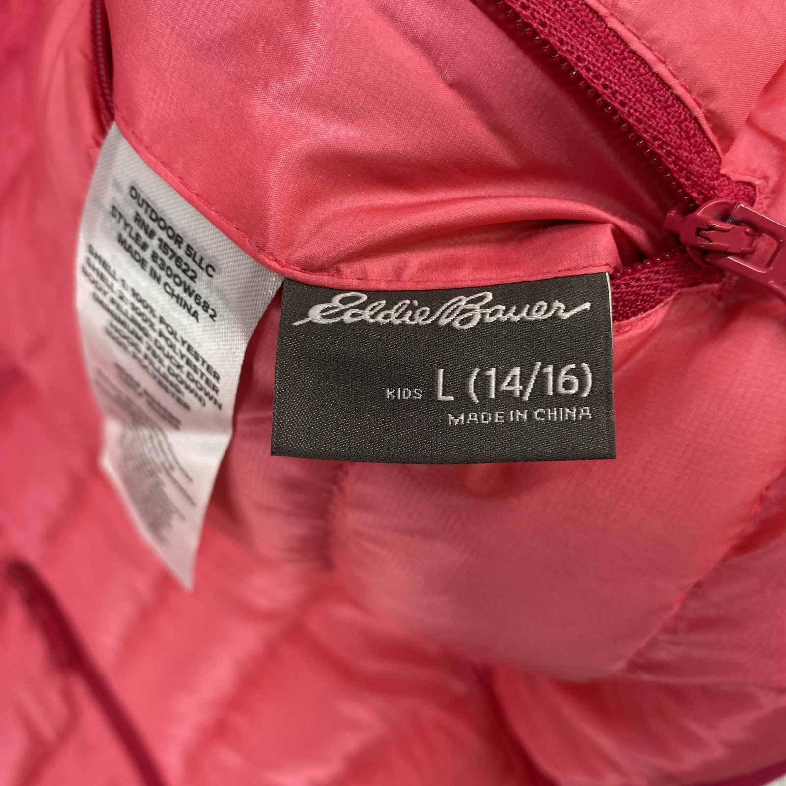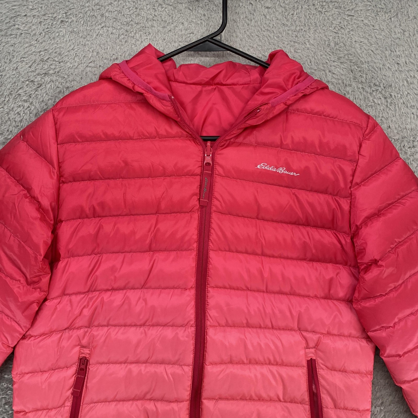 как выглядит Eddie Bauer Puffer Jacket Kids Large 14-16 Pink Hooded Down Full Zip Reversible фото