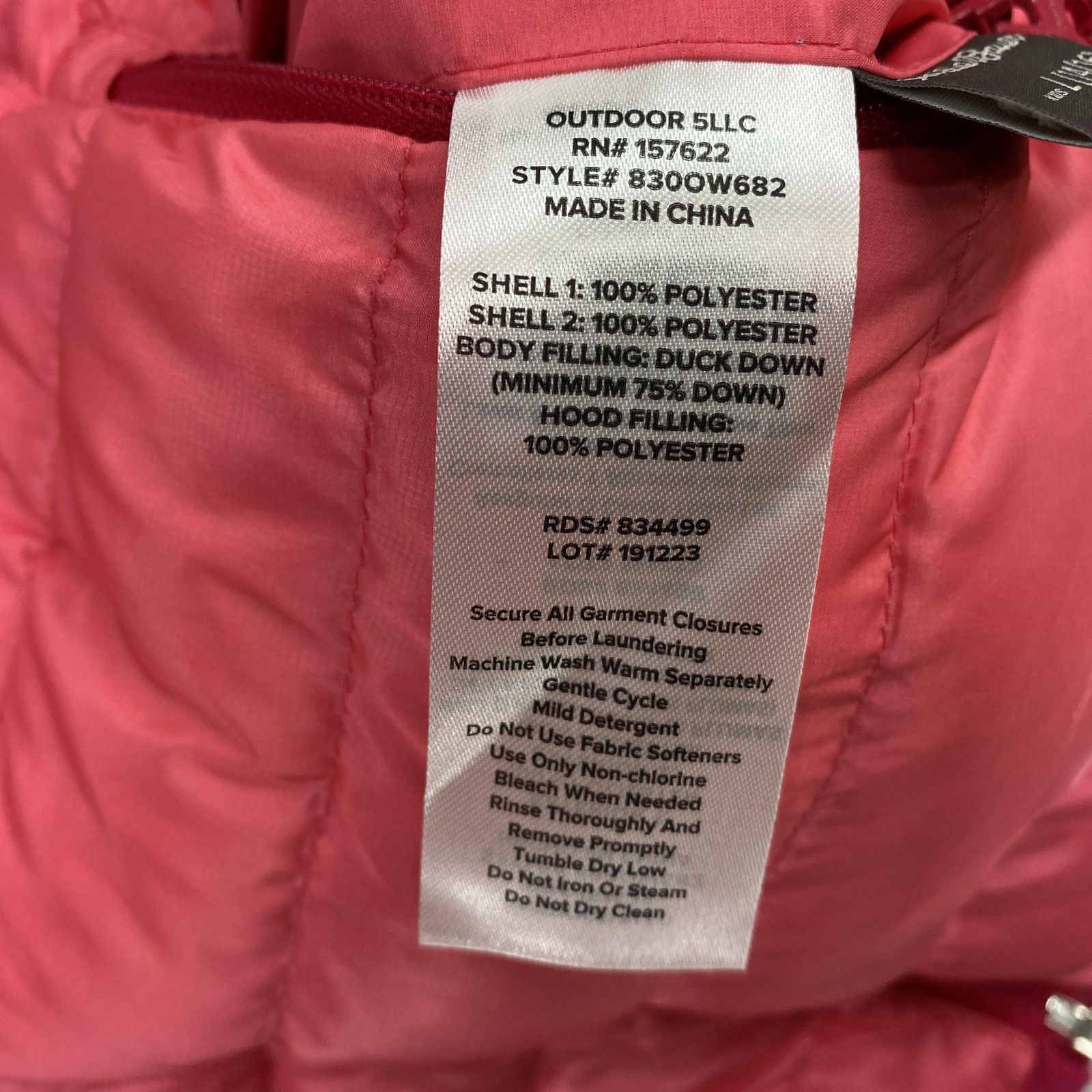 Outer Shell Material: Polyester