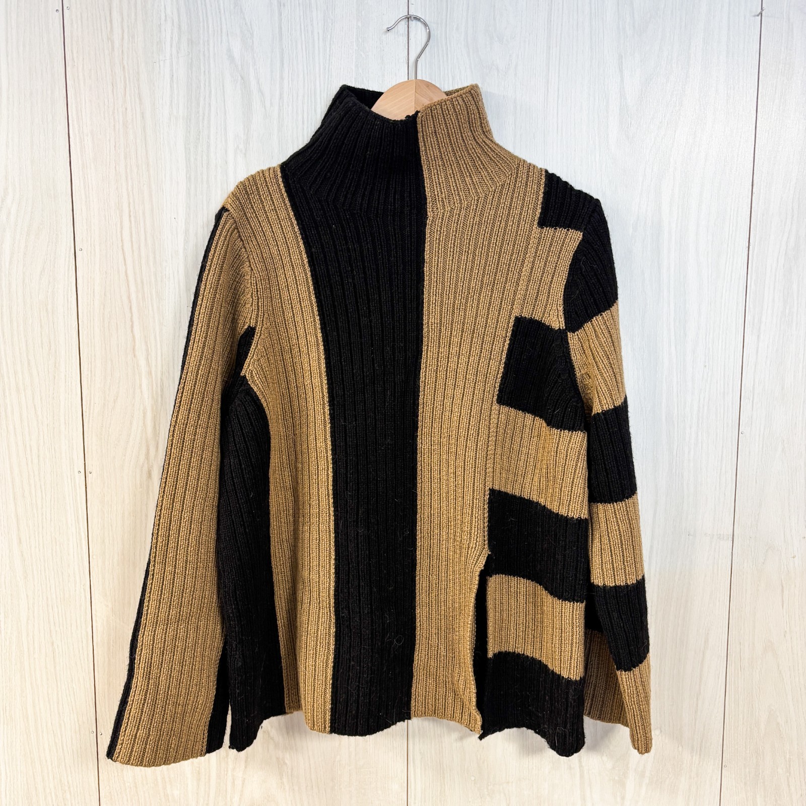 Other Stories 100 Wool Brown and Black Colorblock Oversized Sweater