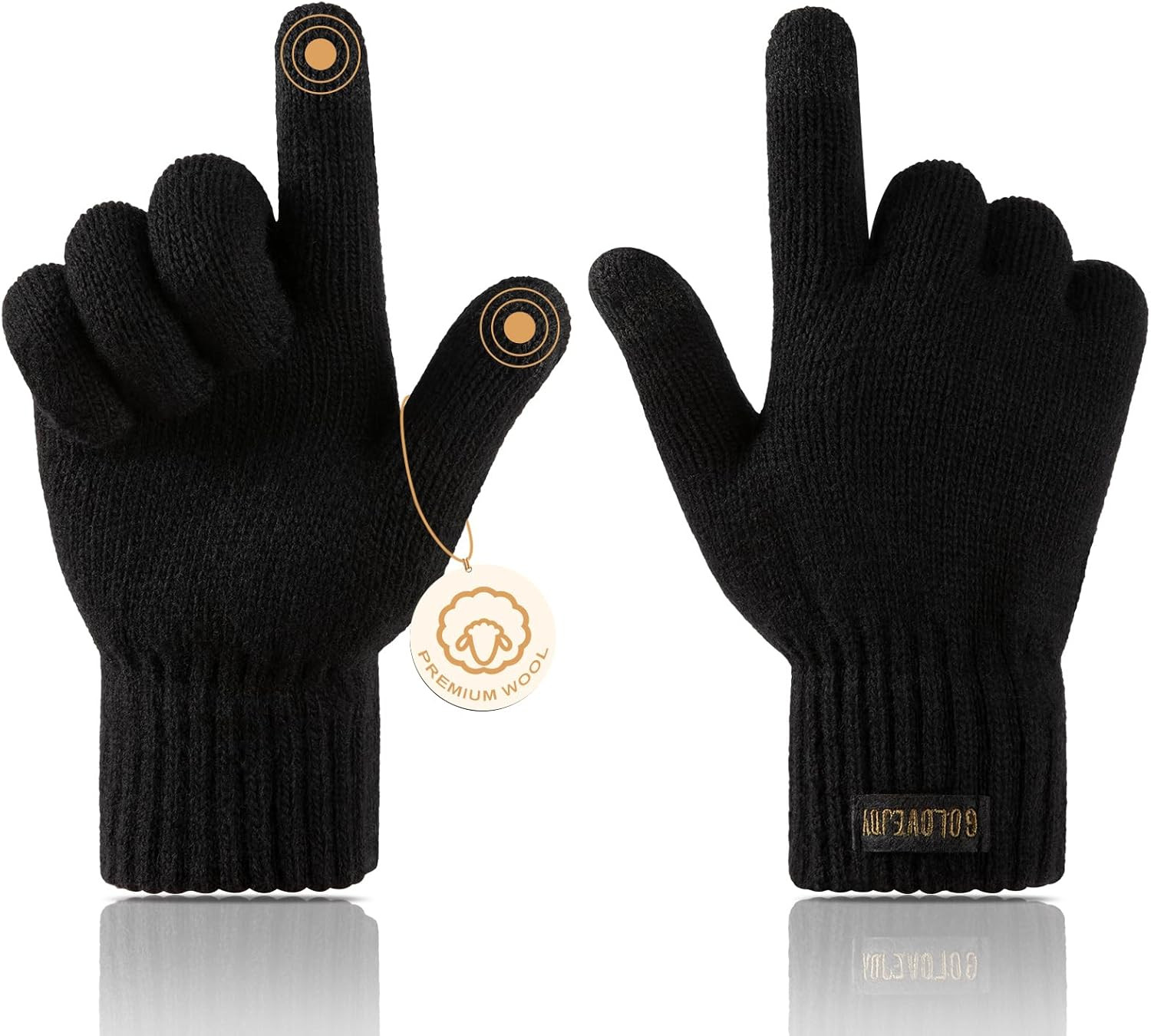 Winter Wool Gloves for Men Warm Knitted Touchscreen Cold Weather Gloves