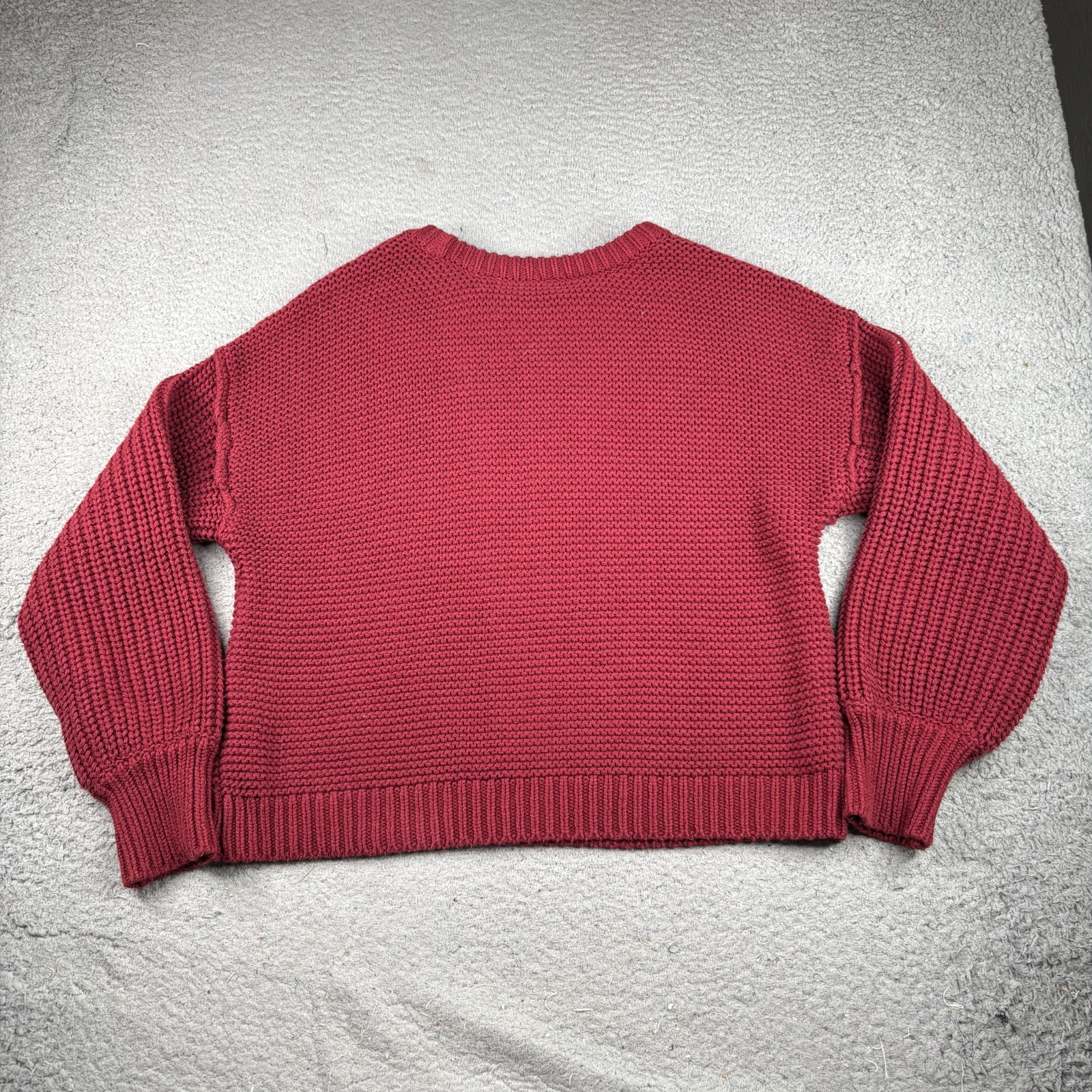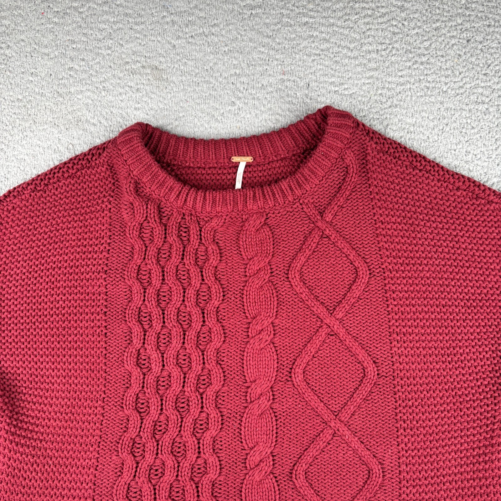 Free People Dream Cable Crew Sweater Womens Small Red Cotton Knit Pullover